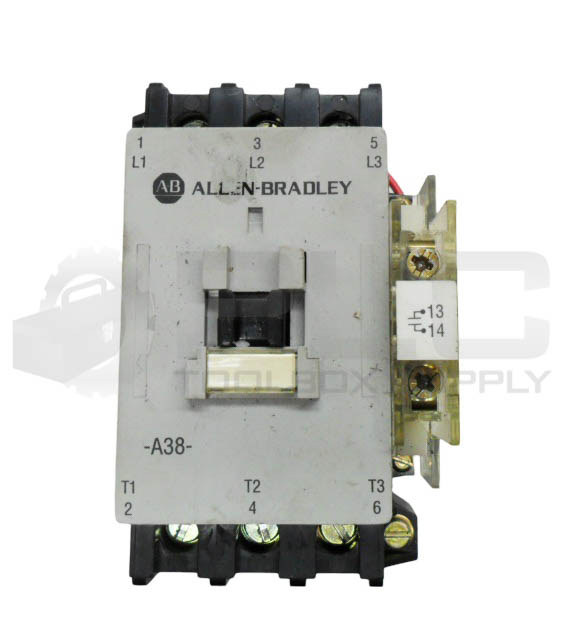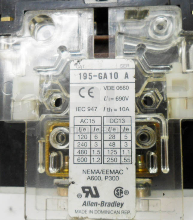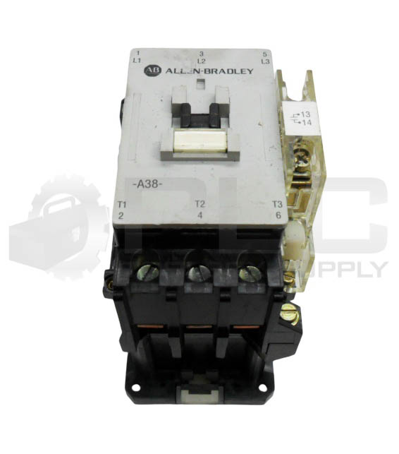 ALLEN BRADLEY 100-A38N*3 /C CONTACTOR W/ GC473 W/ 195-GA10 /A W/ 199-FSMA10 /B