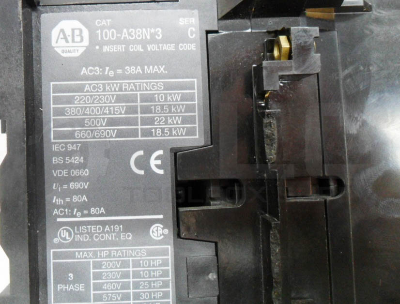 • ALLEN BRADLEY 100-A38N*3 /C CONTACTOR W/ GC473 W/ 195-GA10 /A W/ 199-FSMA10 /B