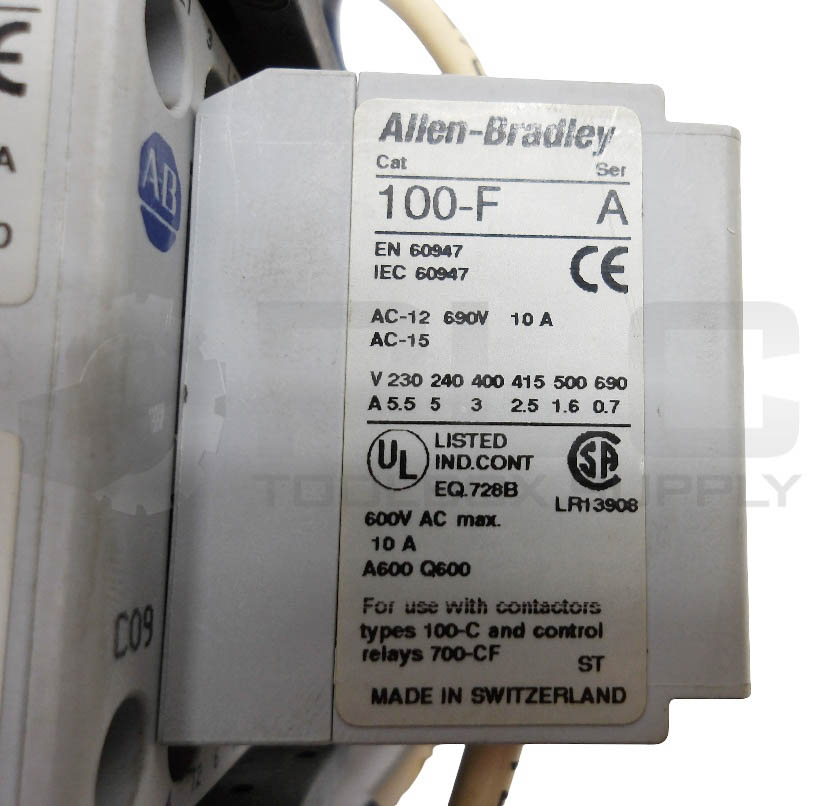 • ALLEN BRADLEY 104-C09DJ22 /A CONTACTOR W/ (2) 100-F /A W/ 193-EA2B /B