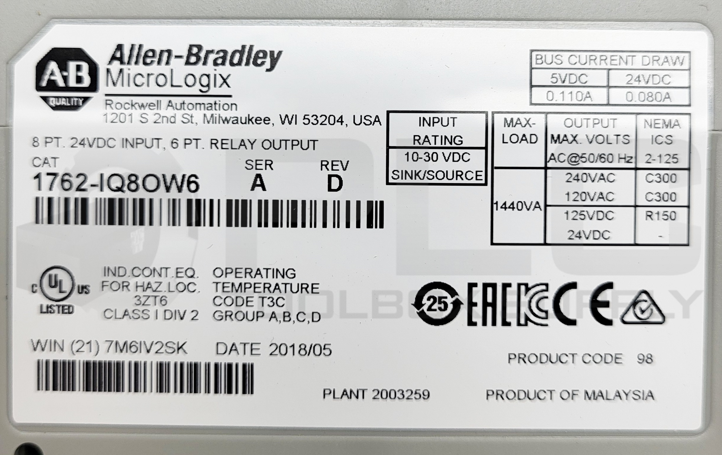 ALLEN BRADLEY 1762-OB16 /A OUTPUT MODULE 16PT 24VDC