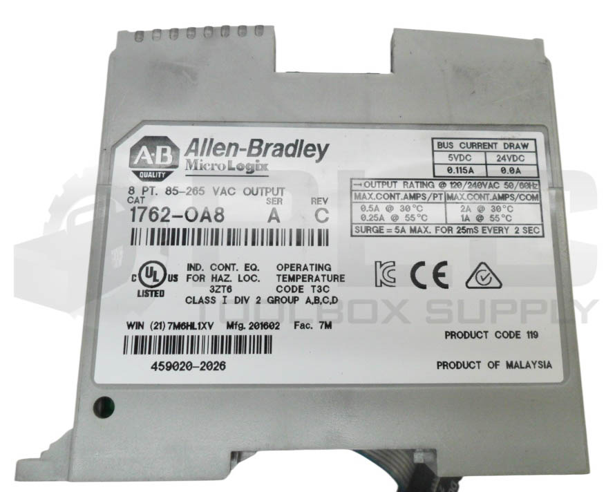 • ALLEN BRADLEY 1762-OA8 /A OUTPUT MODULE 8PT 85-265VAC 5-24VDC 0.115/0.0A *READ*