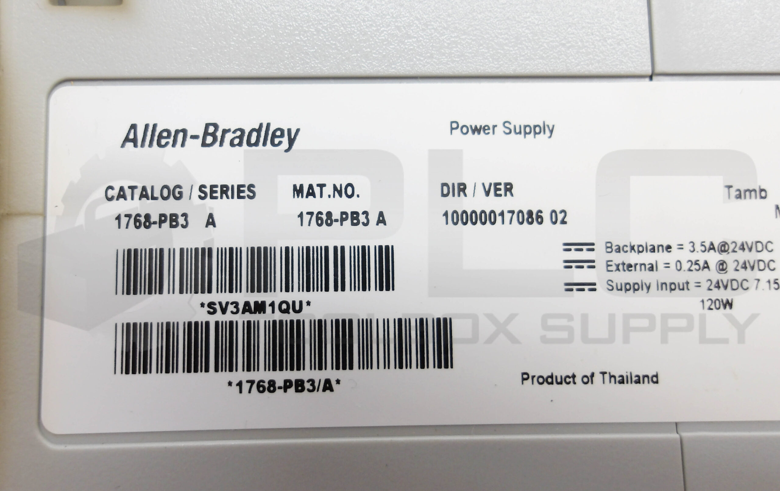 • ALLEN BRADLEY 1768-PB3 /A POWER SUPPLY 24VDC 120W 7.15A