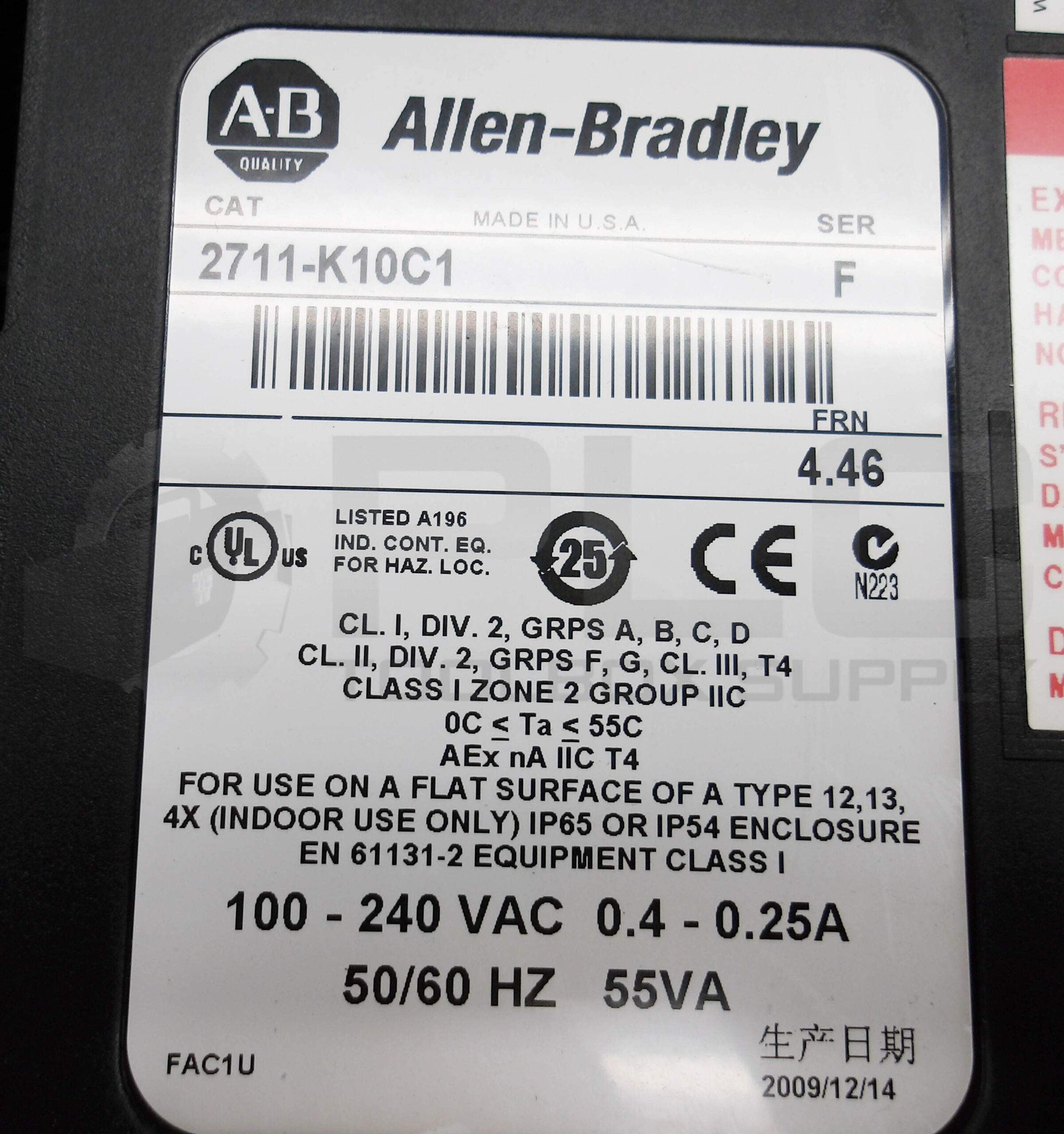 ALLEN BRADLEY 2711-K10C1 /F PANELVIEW OPERATOR INTERFACE 0.4-0.25A