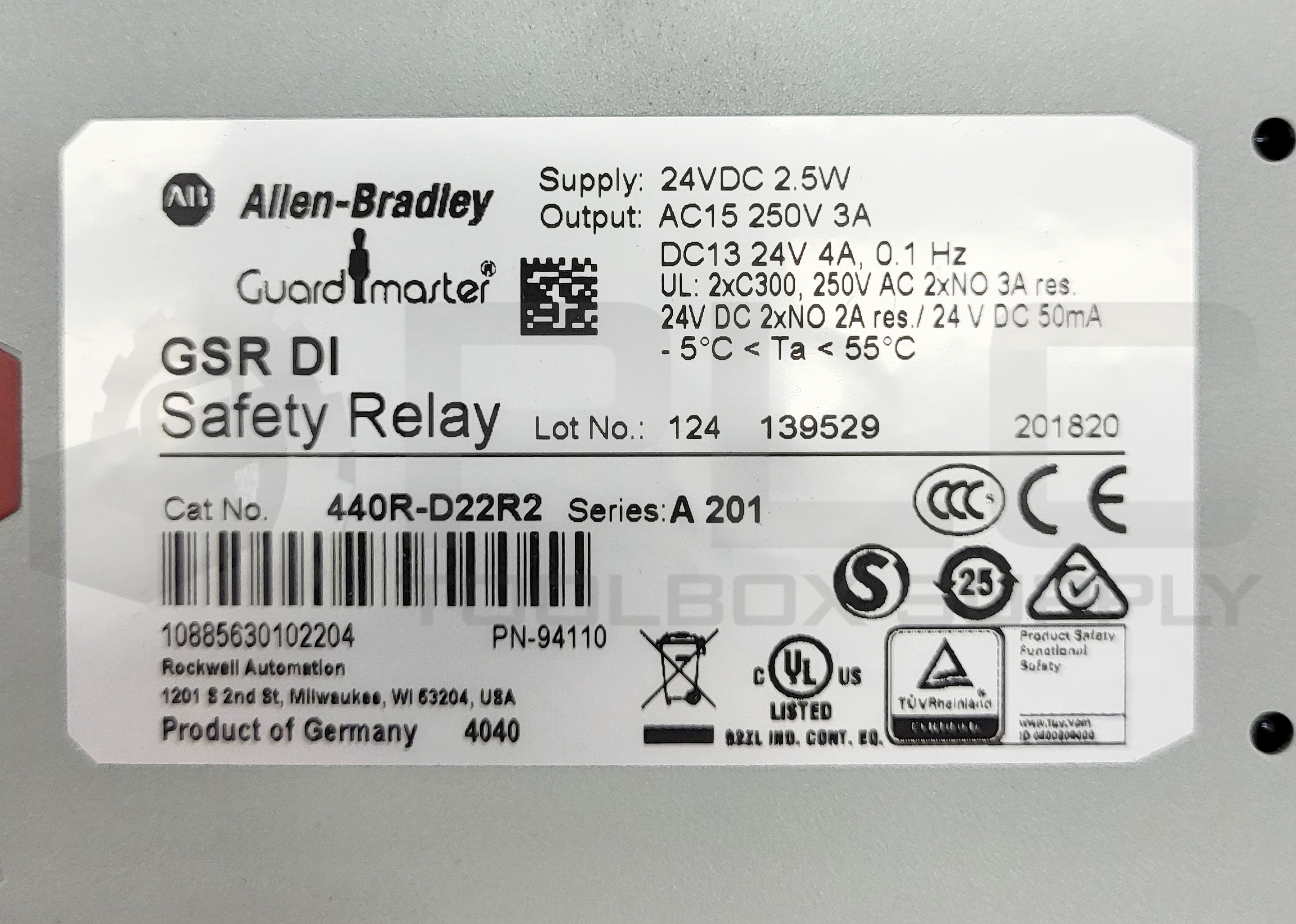 ALLEN BRADLEY 440R-D22R2 /A 201 SAFETY RELAY GSR DI 24VDC 2.5W 3A