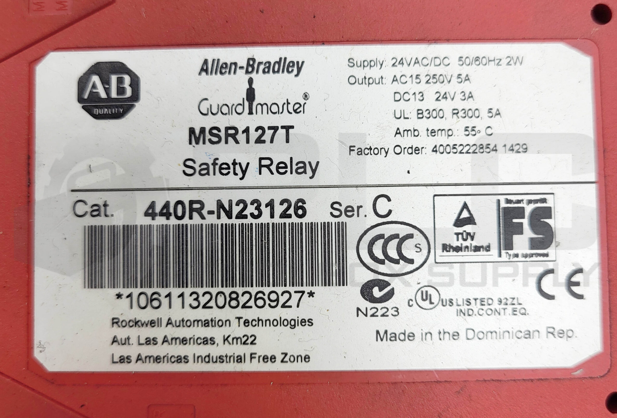 ALLEN BRADLEY 440R-N23126 /C SAFETY RELAY 24VAC/DC 2W MSR127T
