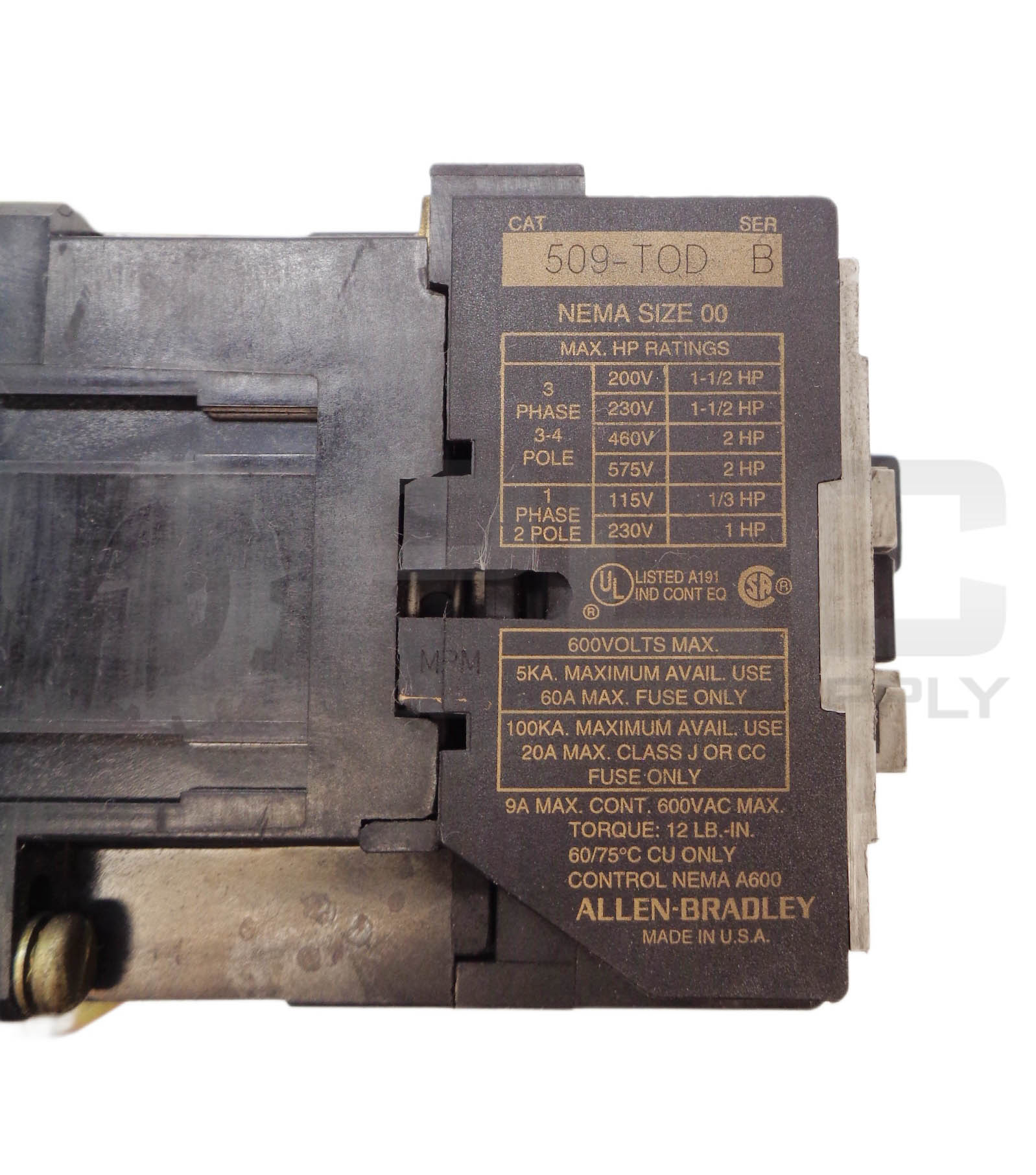 • ALLEN BRADLEY 509-TOD SER B STARTER GA473 W/ OVERLOAD RELAY *READ*