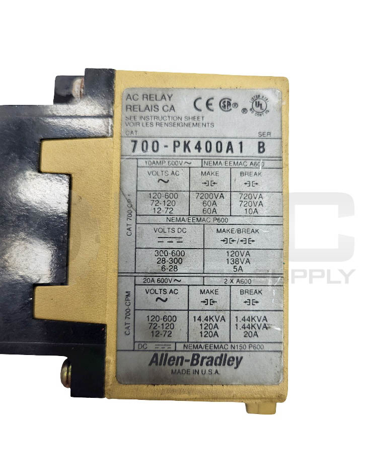 ALLEN BRADLEY 700-PT /B RELAY W/ 700-PK400A1 /B RELAY