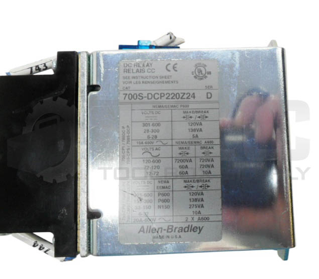 • ALLEN BRADLEY 700S-DCP220Z24 /D DC RELAY 600V AC/DC 10A W/ PD714 COIL 24VDC