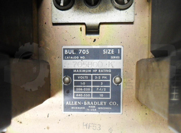 • ALLEN BRADLEY 705B0D /K STARTER SIZE 1 550V 10HP W/ (2) 71A01 COIL