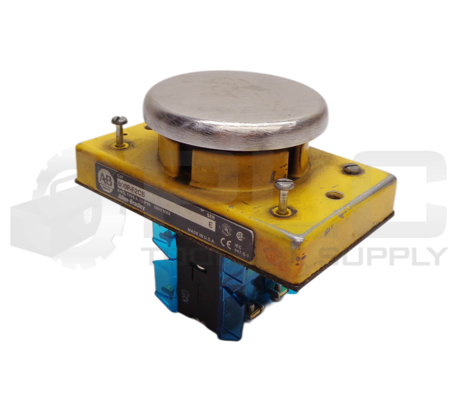 • ALLEN BRADLEY 800P-F2CB /E PUSH BUTTON SWITCH OPERATOR W/ 2 800T-XAV 2 800T-XD1V