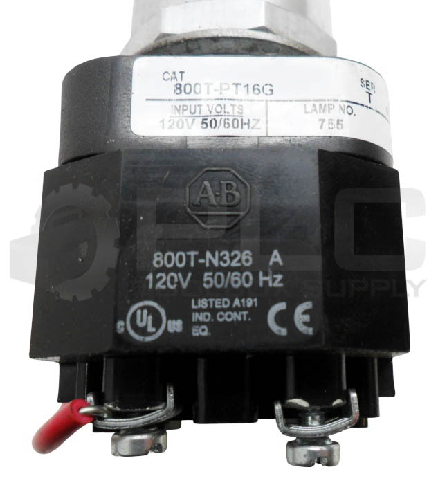 • ALLEN BRADLEY 800T-PT16G /T PUSH BUTTON W/ 800T-N326 /A COIL W/ 800T-XA /D