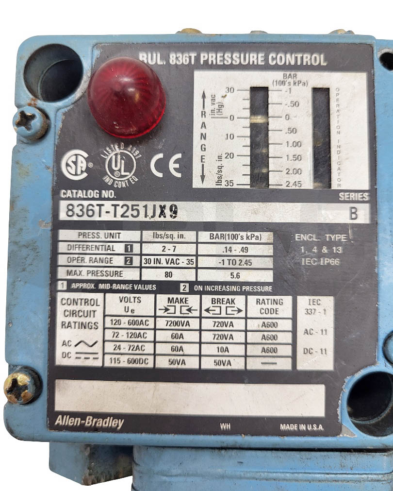 • ALLEN BRADLEY 836T-T252JX9 /B PRESSURE CONTROL SWITCH