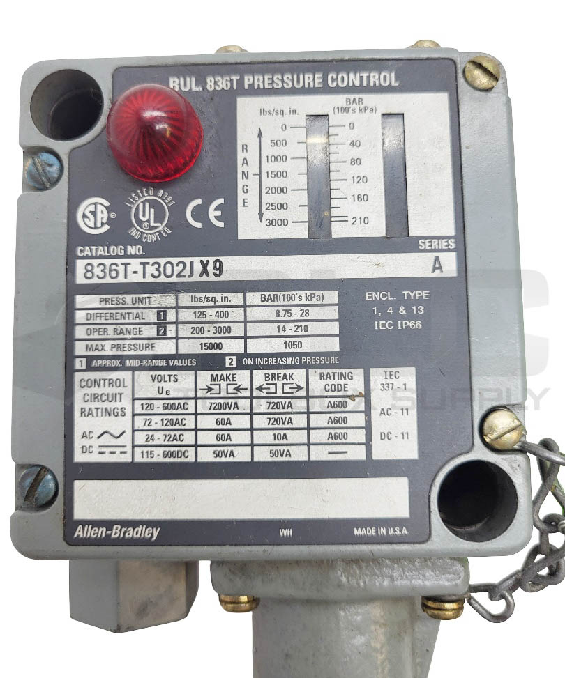 • ALLEN BRADLEY 836T-T302JX9 /A PRESSURE CONTROL