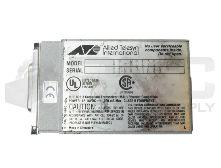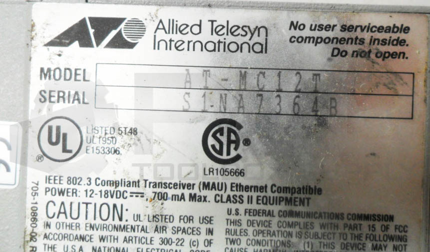 • ALLIED TELESYN AT-MC12T MEDIA CONVERTER AUI TO 10BASE-T 12-18VDC