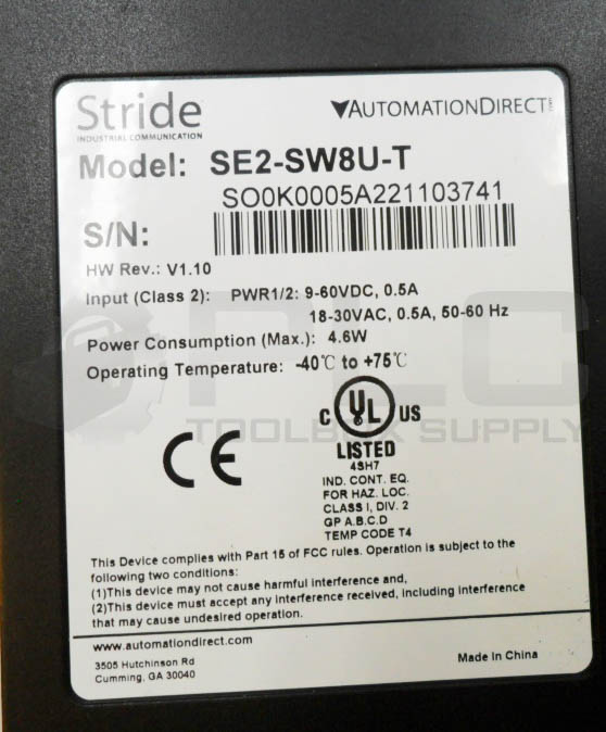 AUTOMATION DIRECT SE2-SW8U-T ETHERNET SWITCH 9-60VDC 0.5A 18-30VAC 50/60HZ