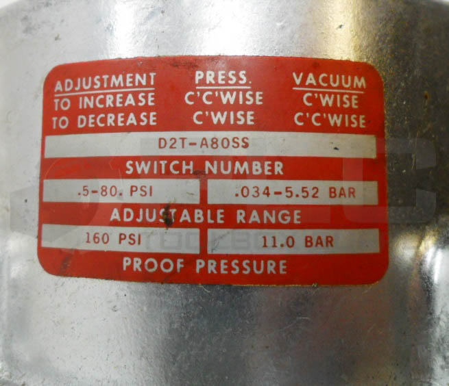 BARKSDALE 96211-BB3-P1 PRESSURE SWITCH 8.5-50PSI 5A 125-250VAC