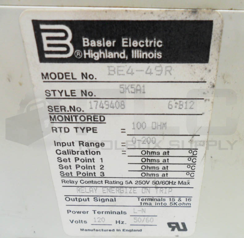 BASLER ELECTRIC BE1-51A SOLID STATE TIME OVERCURRENT RELAY W/ 4CMA-20 TRANSDUCER