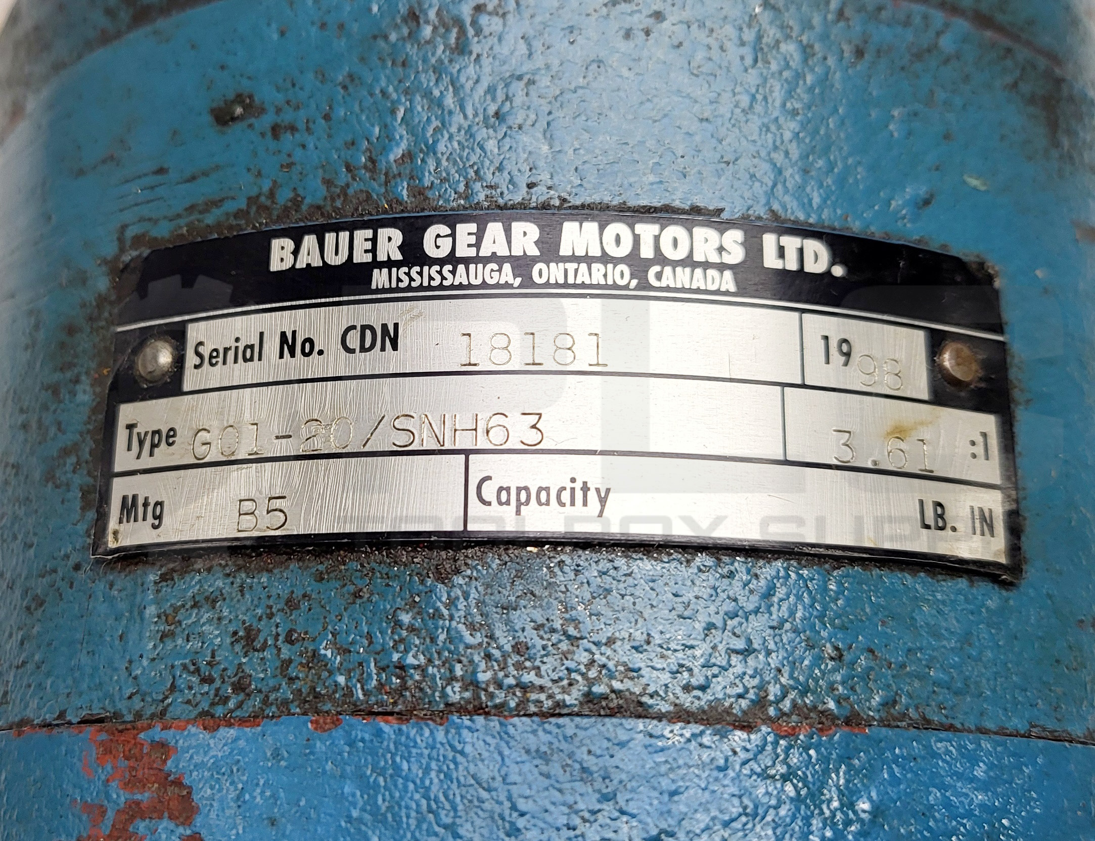 BAUER G01-20/SNH63 GEAR MOTOR, RATIO 3.61:1