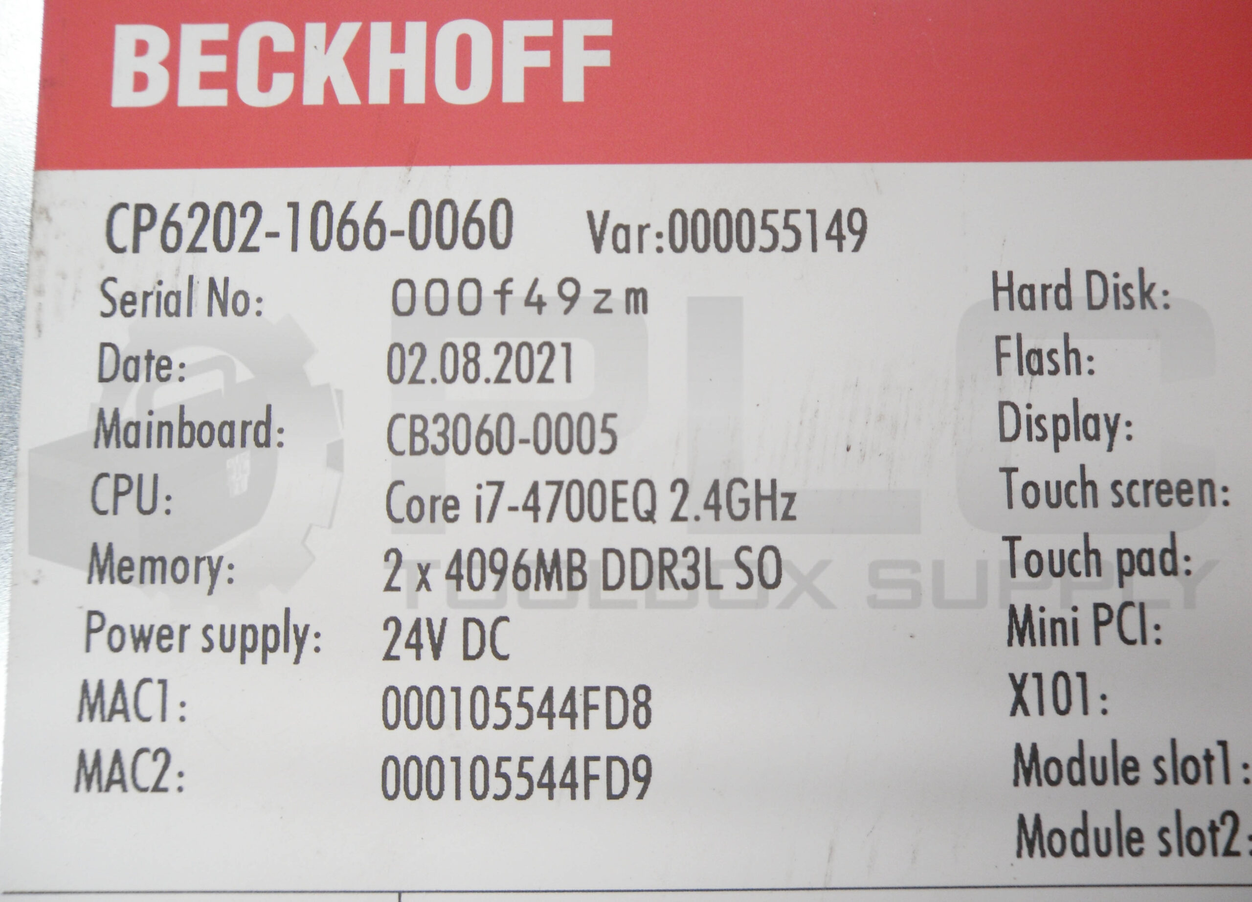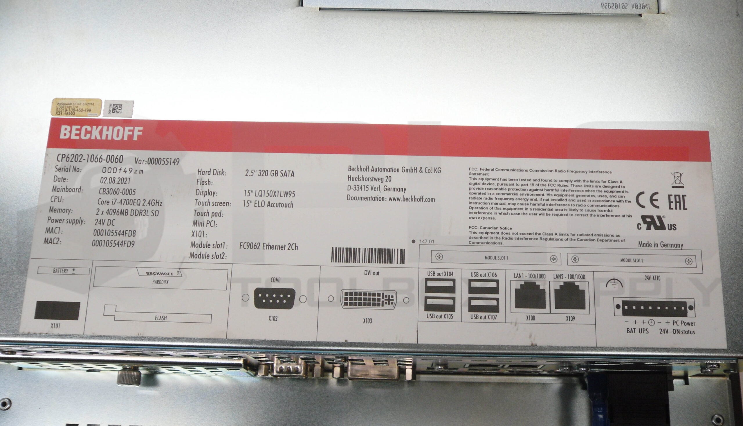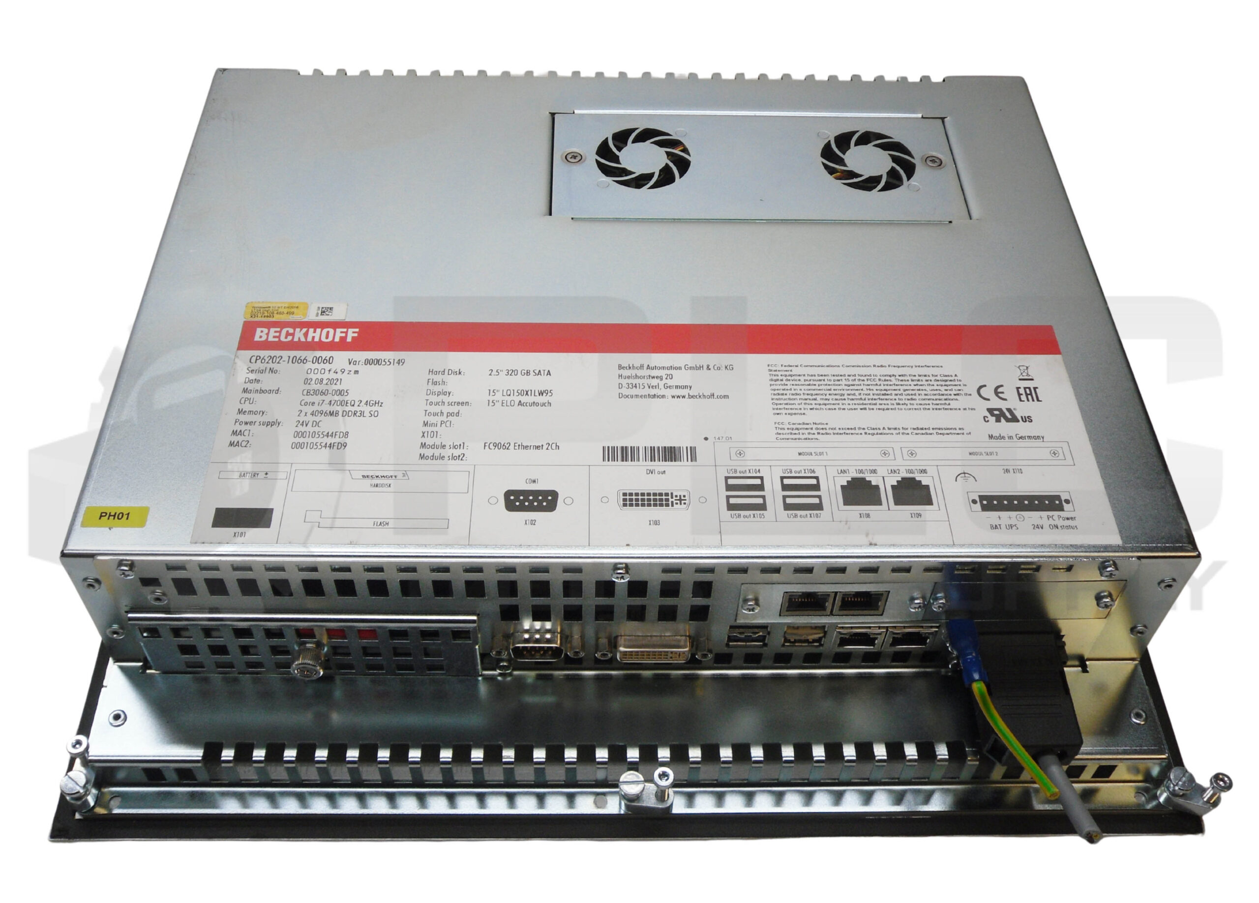 • BECKHOFF CP6202-1066-0060 TOUCHSCREEN INDUSTRIAL PC, 24V DC, 2.5″ 320GB SATA