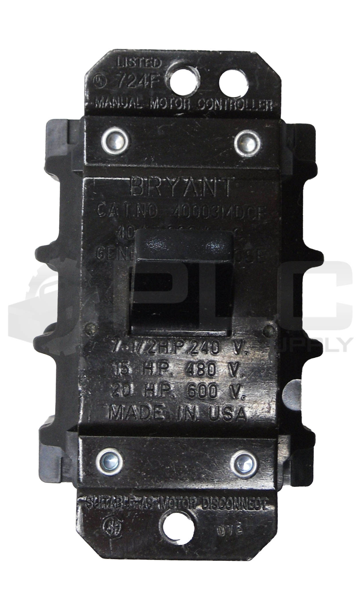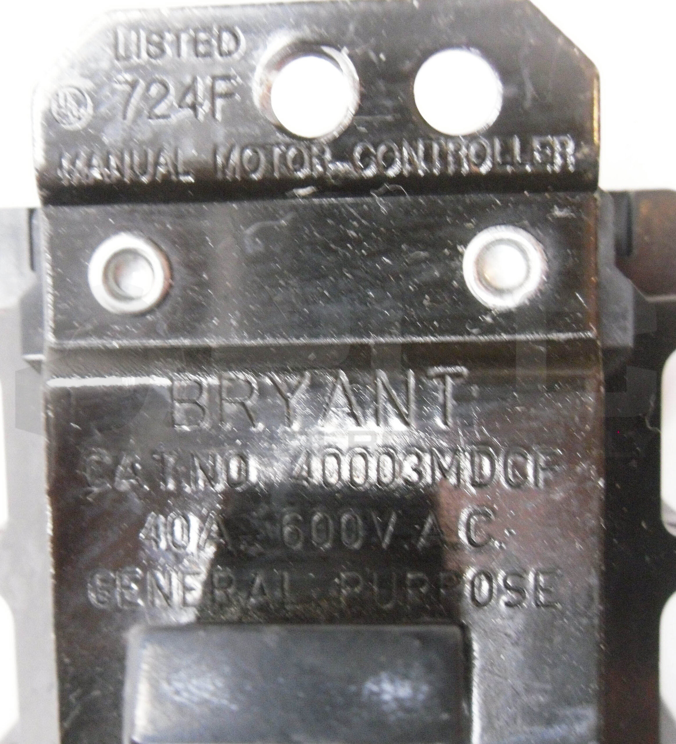 • BRYANT 40003MDCF MANUAL MOTOR CONTROLLER 40A 600VAC 7-1/2HP