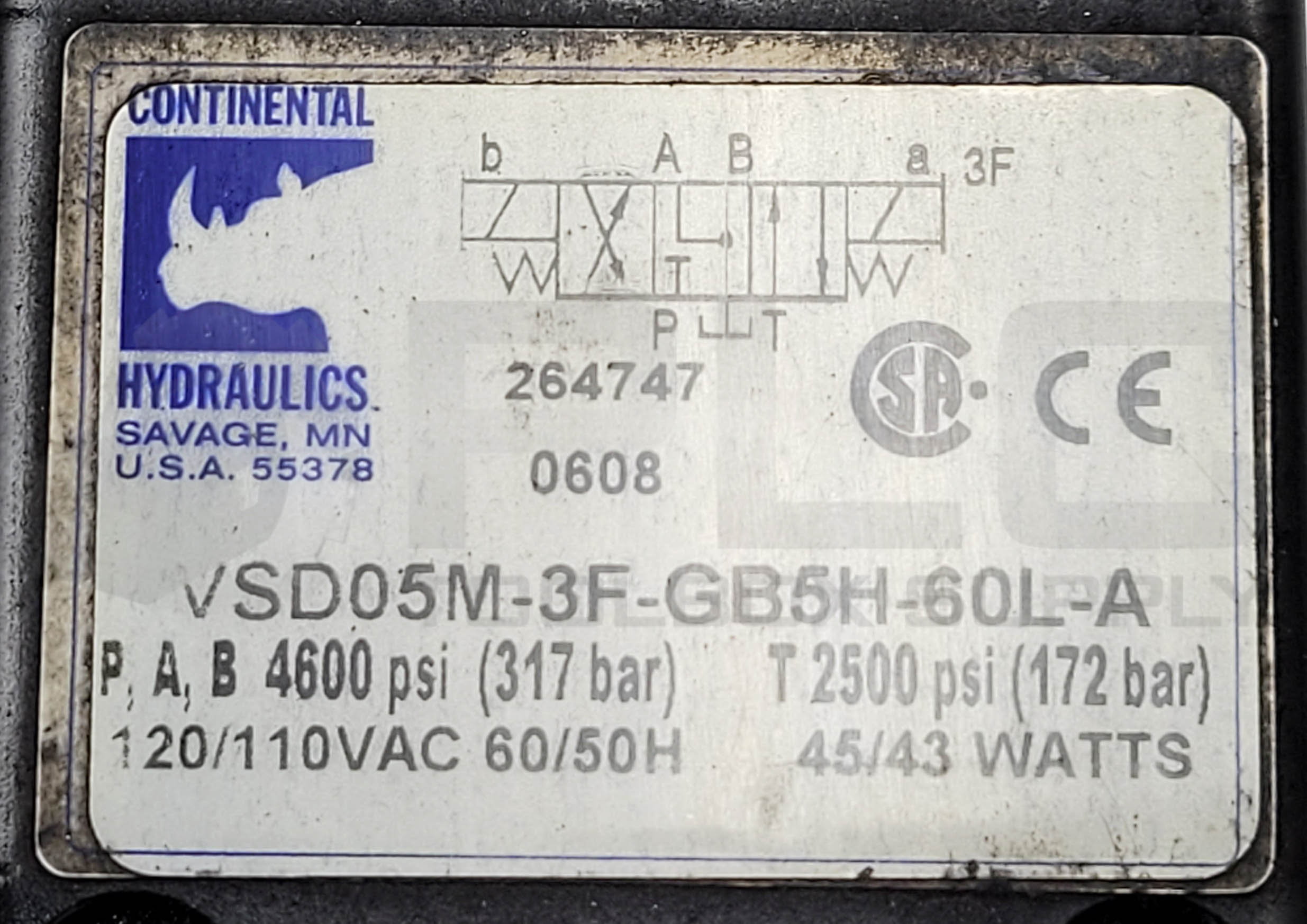 • CONTINENTAL HYDRAULICS VSD05M-3F-GB5H-60L-A HYDRAULIC VALVE