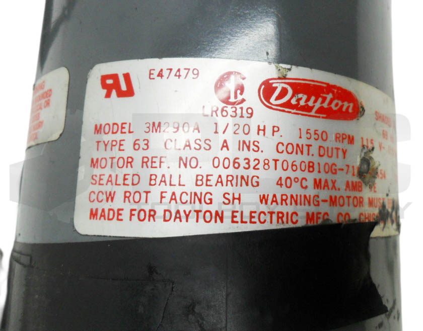 DAYTON 3M290A SHADED POLE MOTOR 1/2HP 1550RPM 115V 1.5A 60HZ