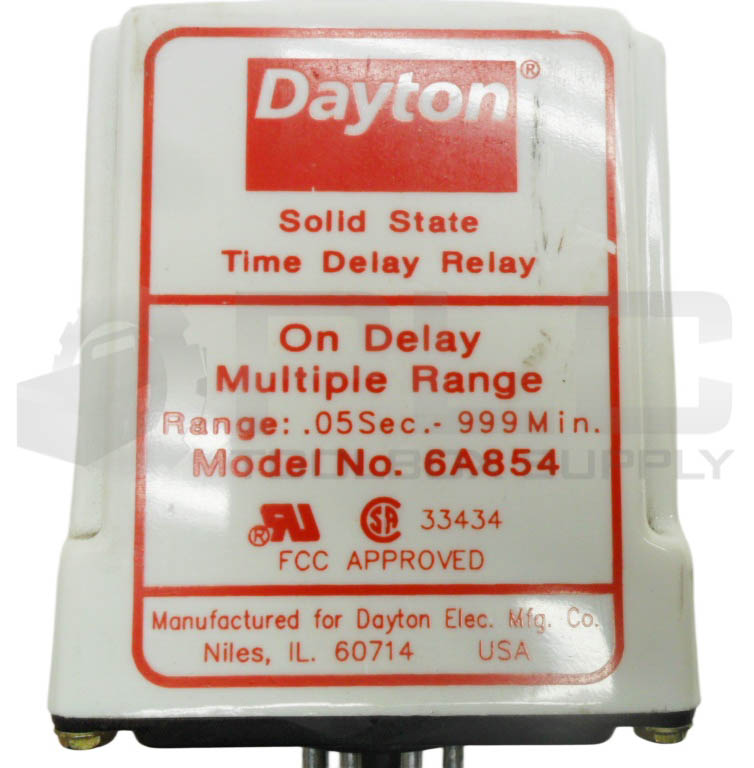 • DAYTON 6A854 SOLID STATE TIME DELAY RELAY .05SEC-.999MIN 120VAC 50/60HZ 10A