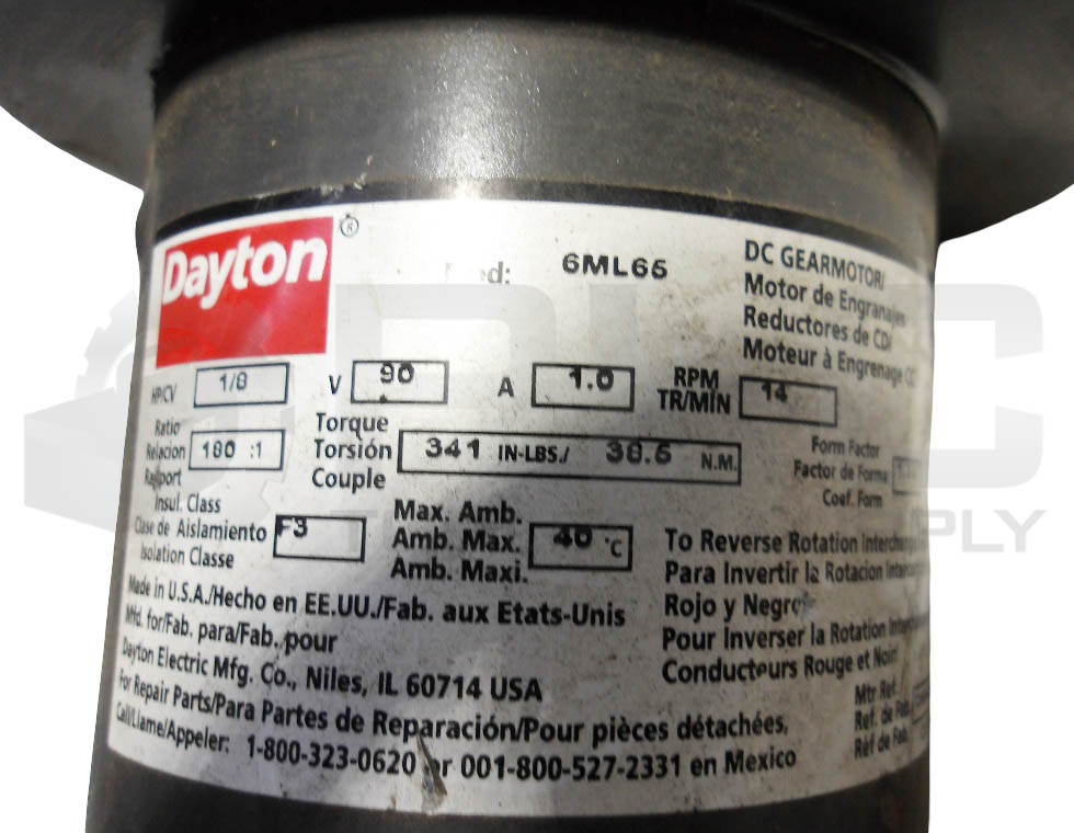 DAYTON 6ML65 DC GEAR MOTOR 90V 1.0A