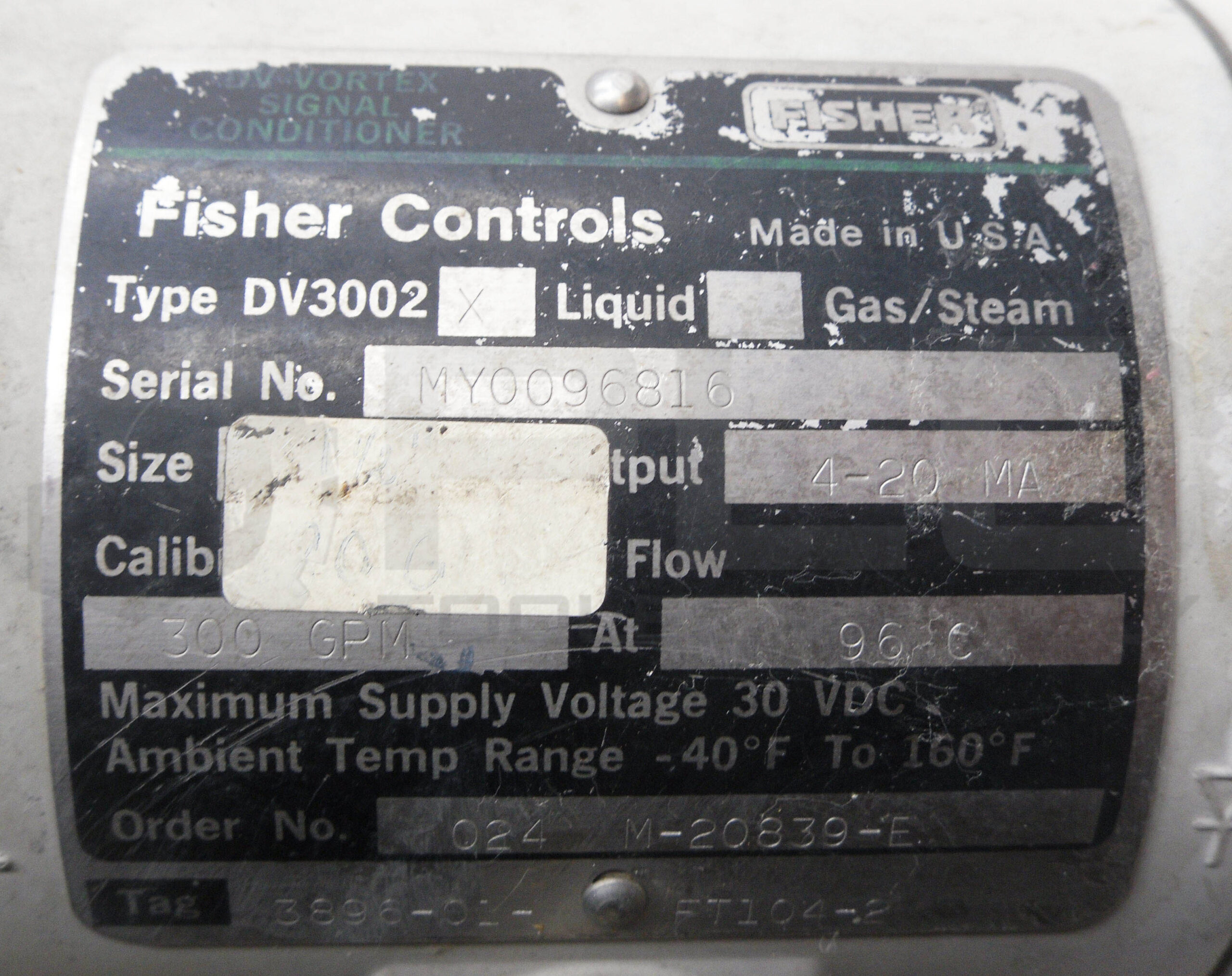 • FISHER CONTROLS DV3002X DV VORTEX SIGNAL CONDITIONER 2″ 200GP 30VDC