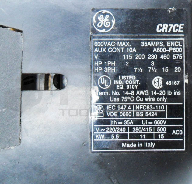 • GENERAL ELECTRIC CR7CE CONTACTOR 600VAC 35A 600V