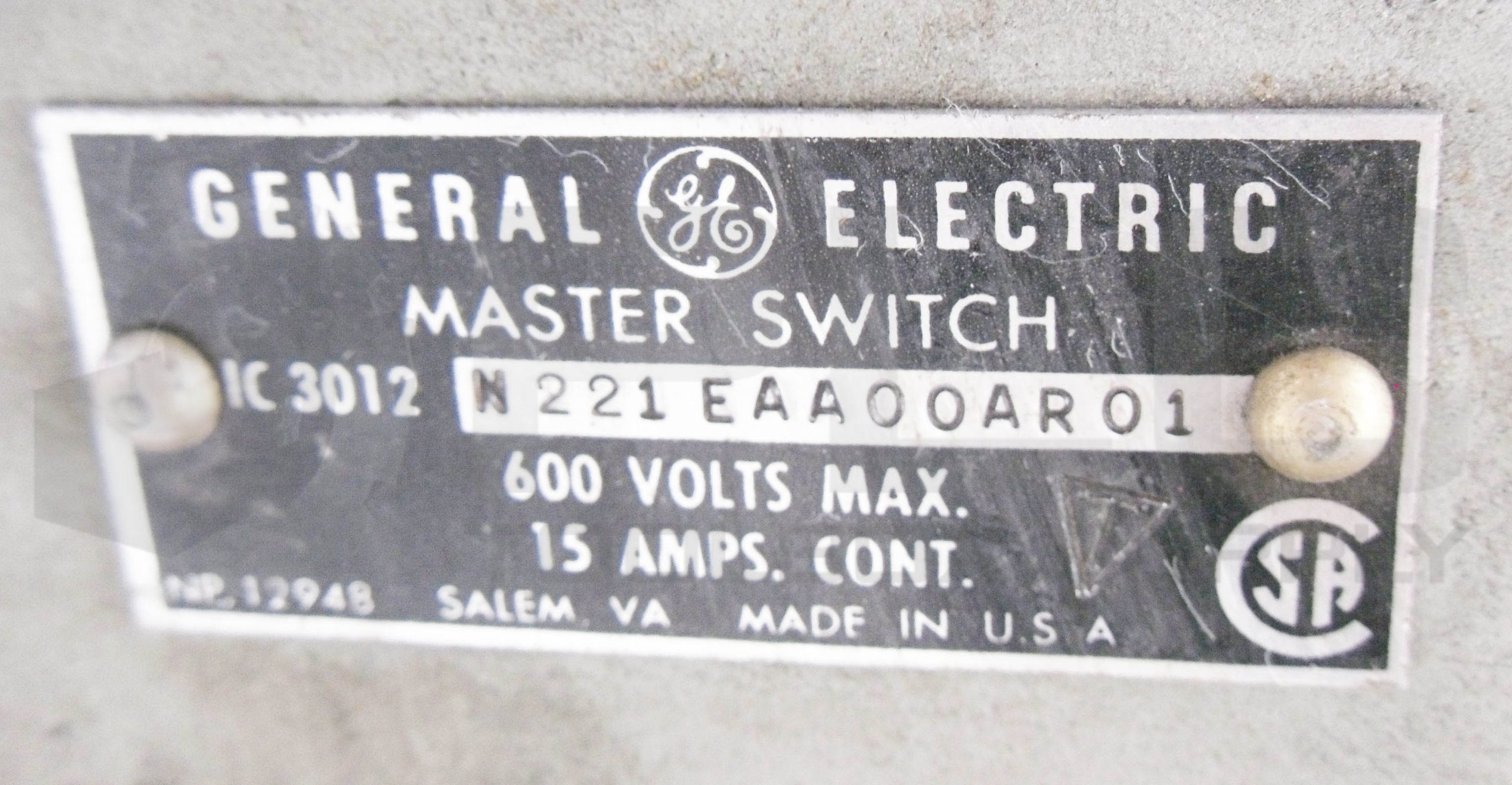 • GENERAL ELECTRIC IC 3012 N221EAA00AR01 MASTER SWITCH 600V 15A