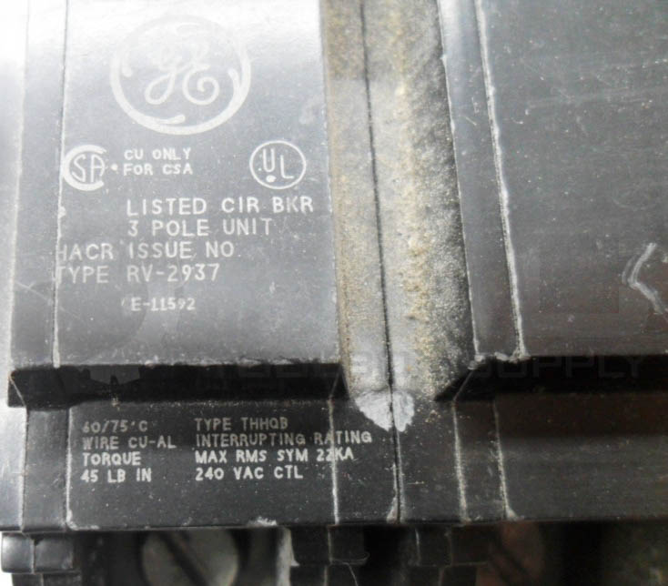 • GENERAL ELECTRIC THHQB3100 CIRCUIT BREAKER 3 POLE 100A 240VAC