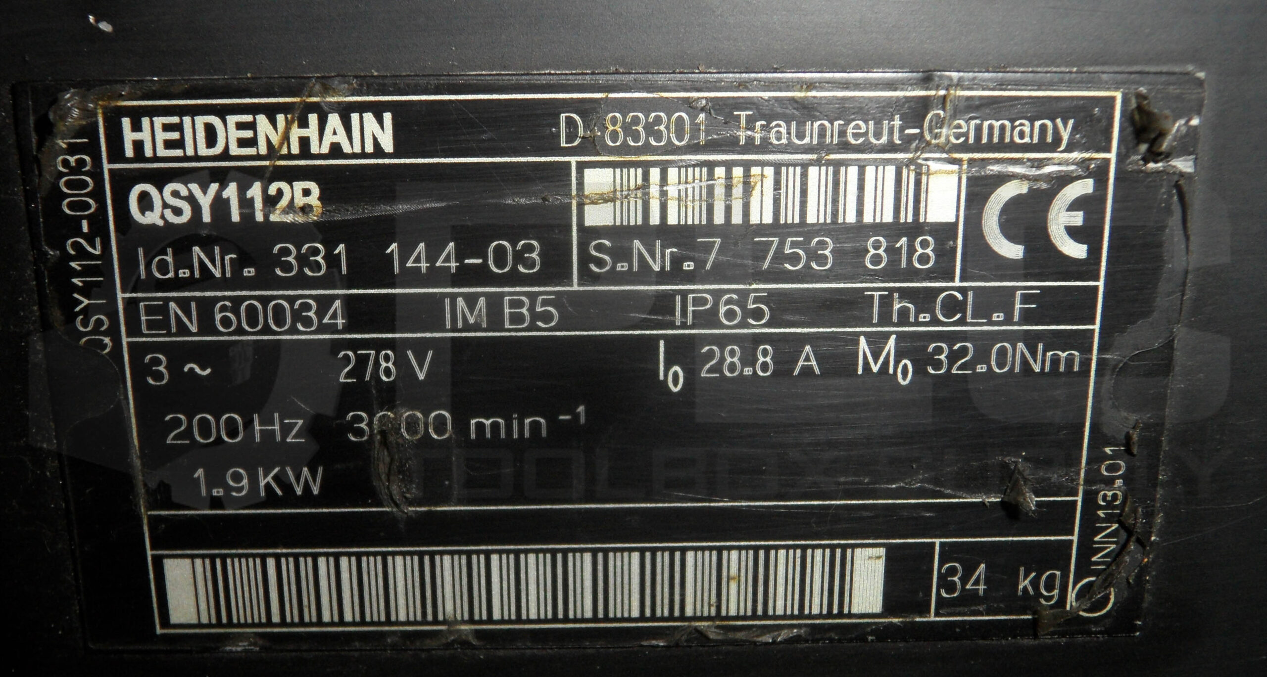 HEIDENHAIN QSY112B SERVO MOTOR 278V 200HZ 3000RPM 1.9KW 28.8A 32.0NM D-83301