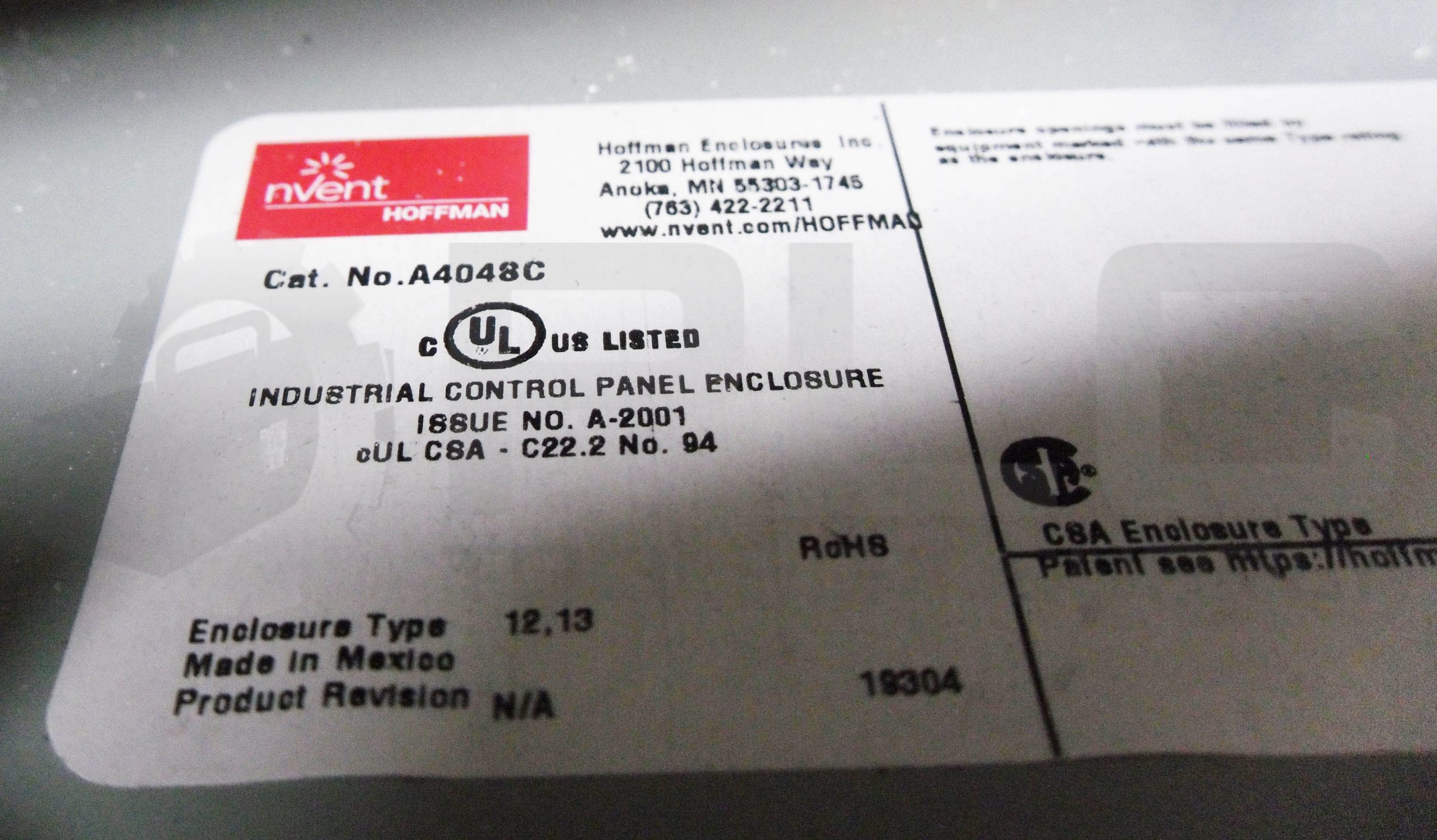 • HOFFMAN A4048C INDUSTRIAL CONTROL PANEL ENCLOSURE 4-1/4″ X 4-1/4″ X 3-1/4″