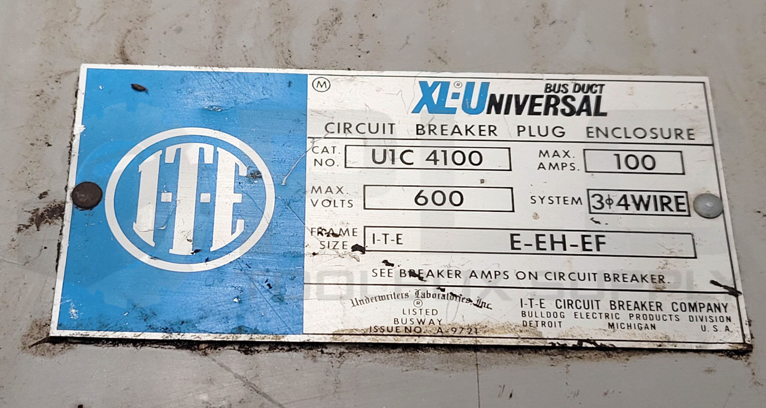 • ITE U1C4100 XL-UNIVERSAL BUS DUCT SWITCH 100A 600V
