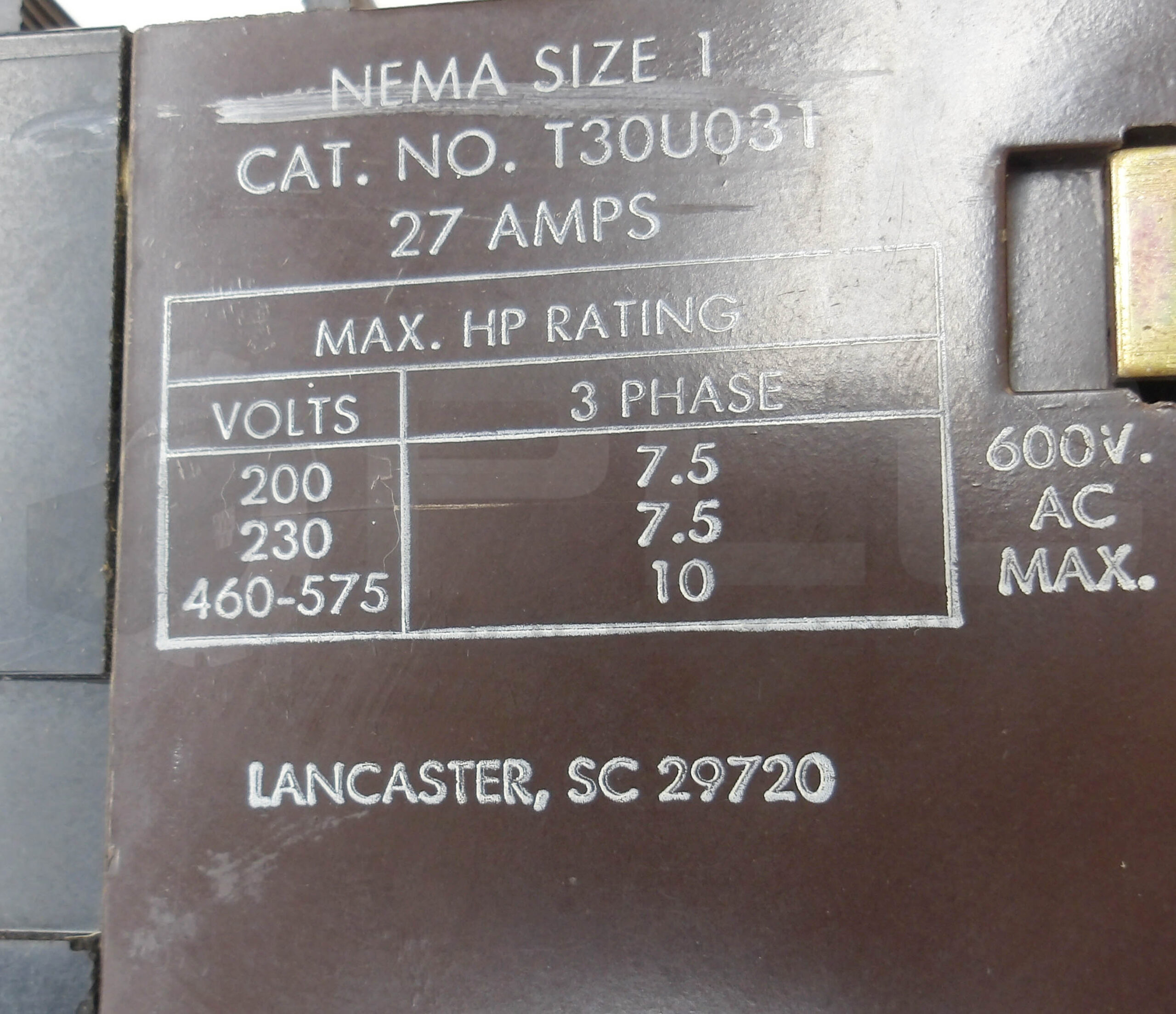 • JOSLYN CLARK T30U031 REVERSING STARTER 27A 600VAC W/ (2) TB159-1 COIL 110-120V