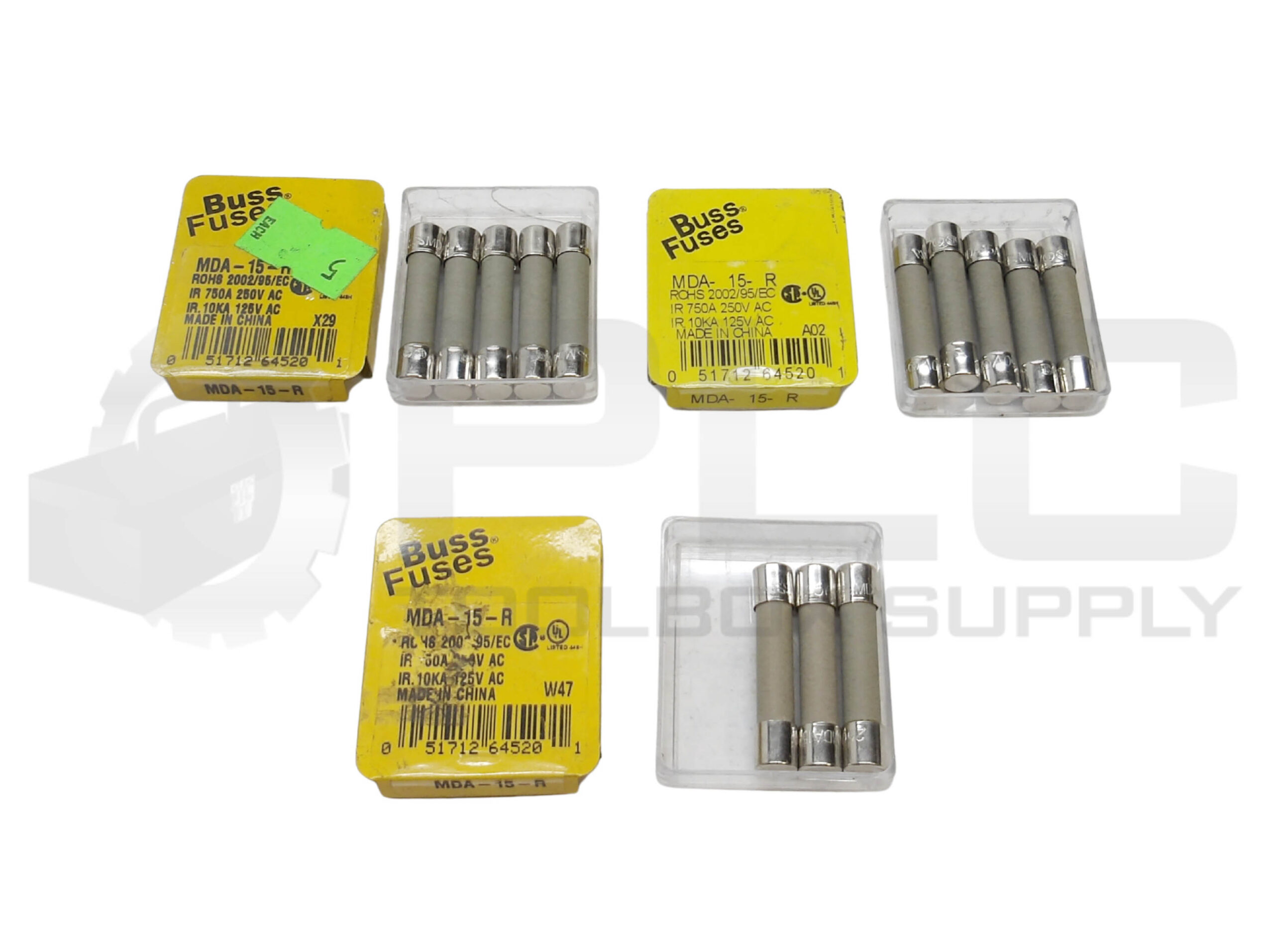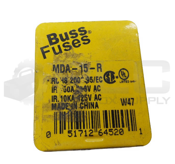 LOT OF 13 NEW BUSSMANN MDA-15-R FUSE 15A 250VAC