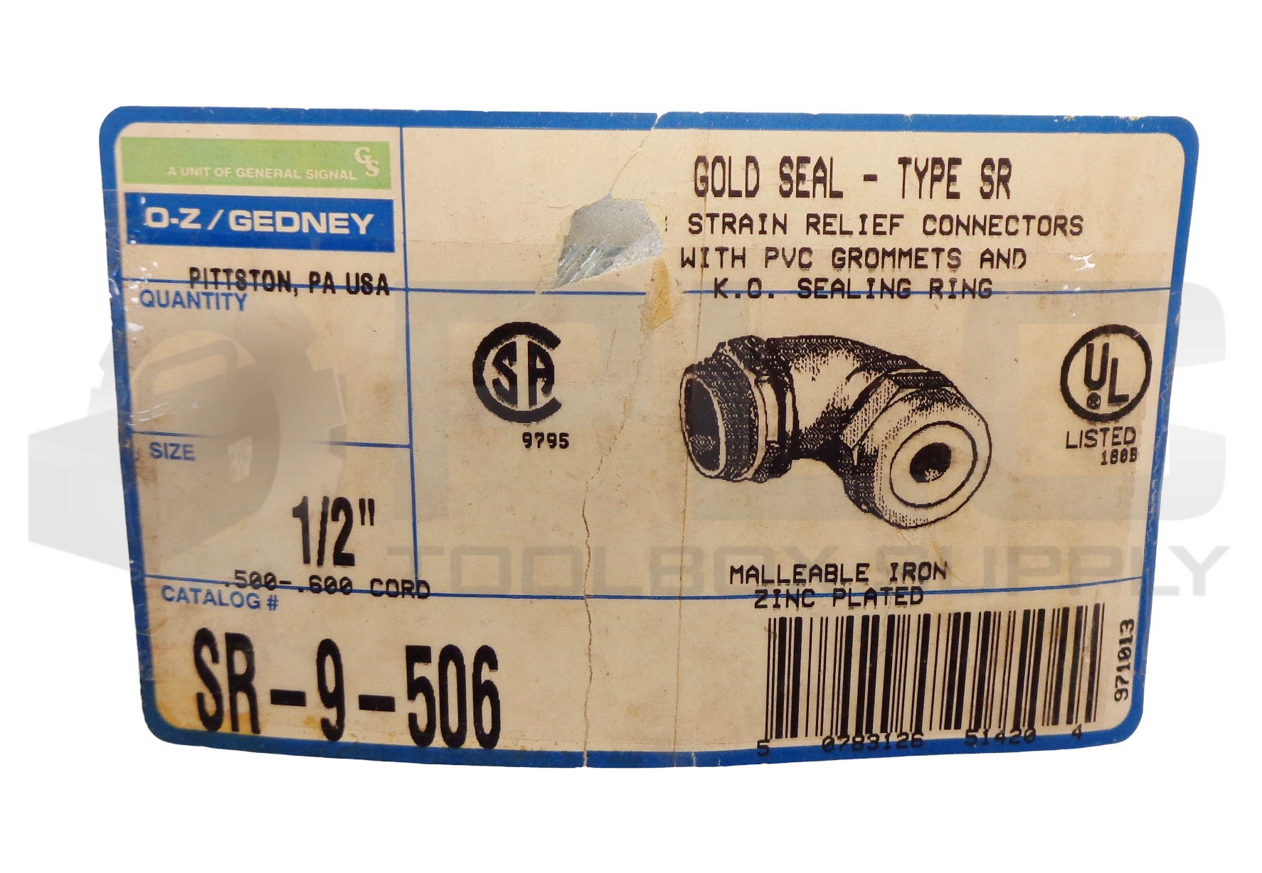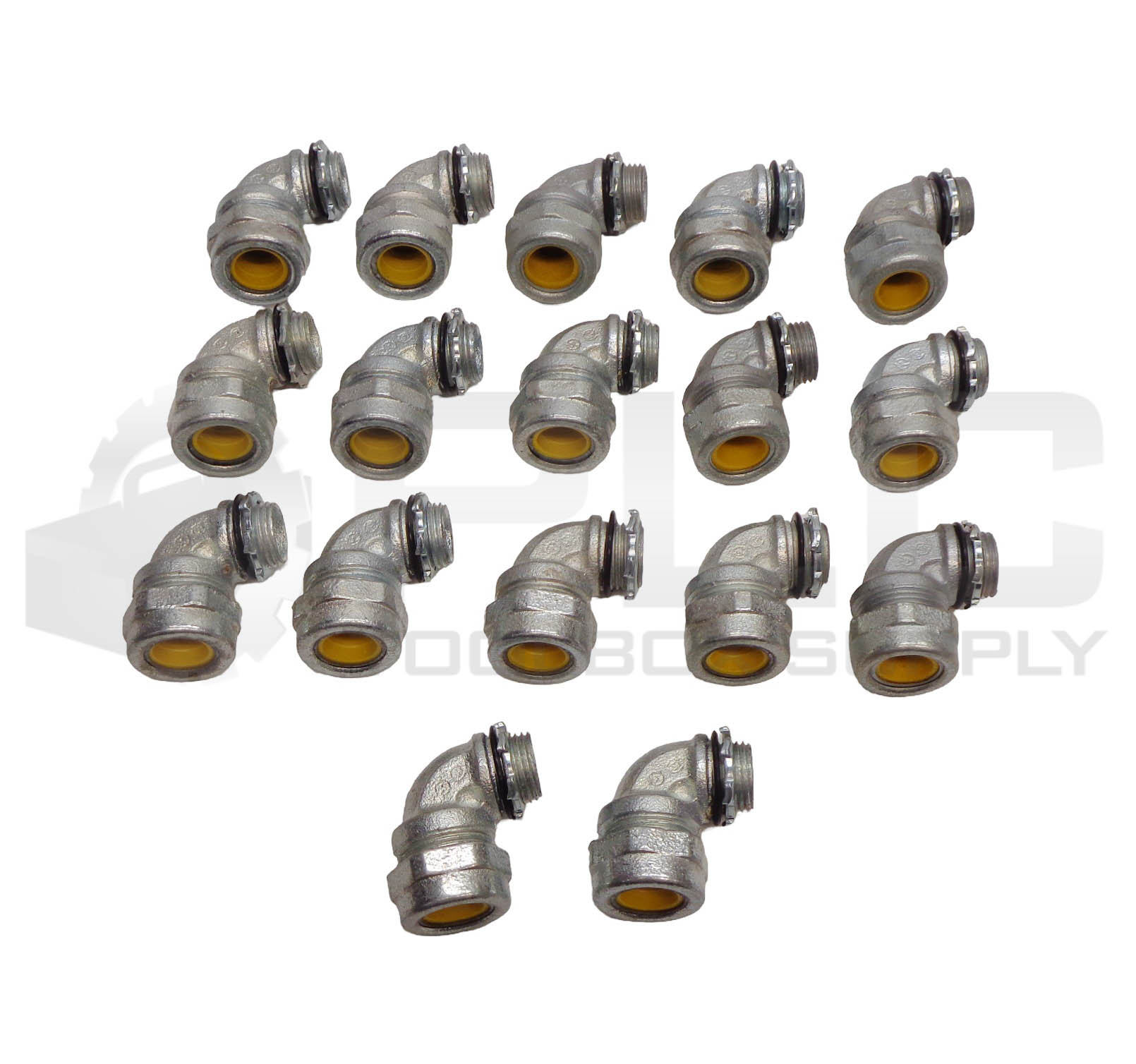 LOT OF 17 NEW EGS O-Z/GEDNEY SR-9-506 90° STRAIN RELIEF CONNECTORS, 1/2″