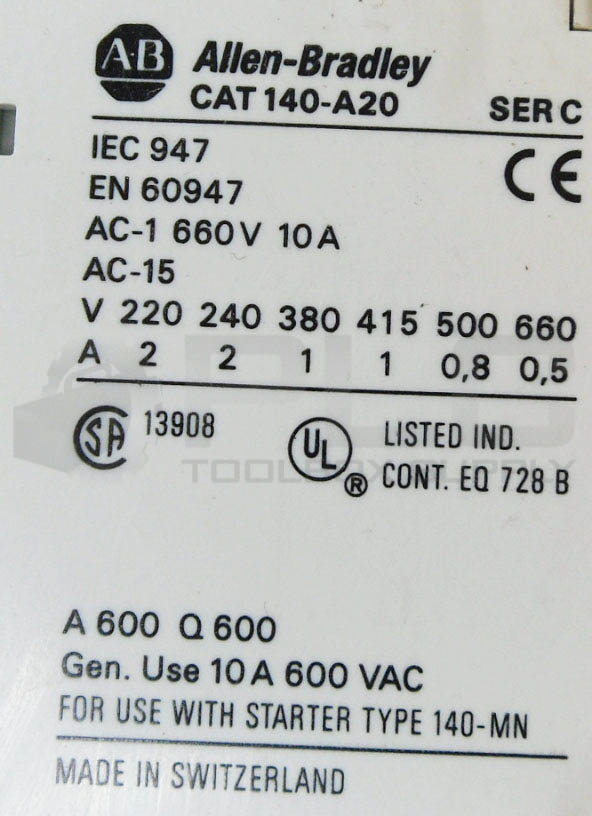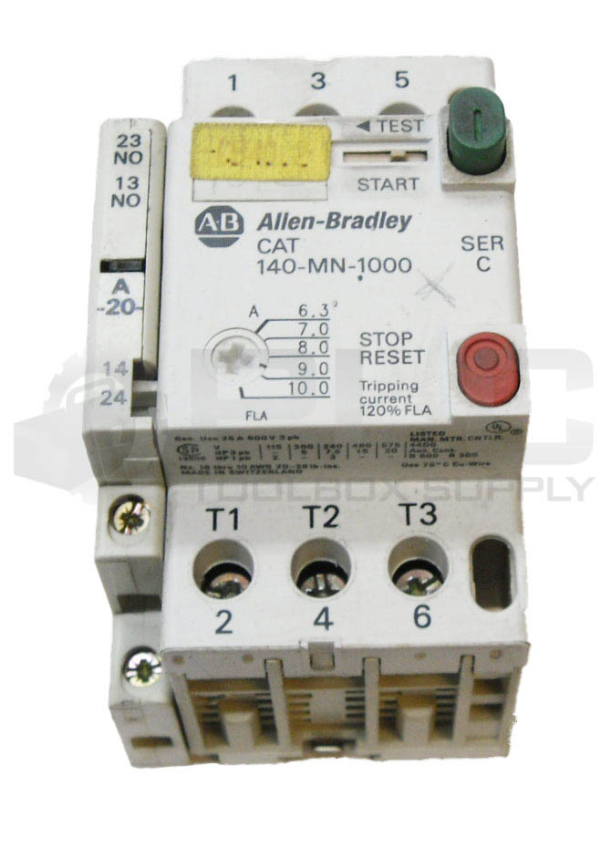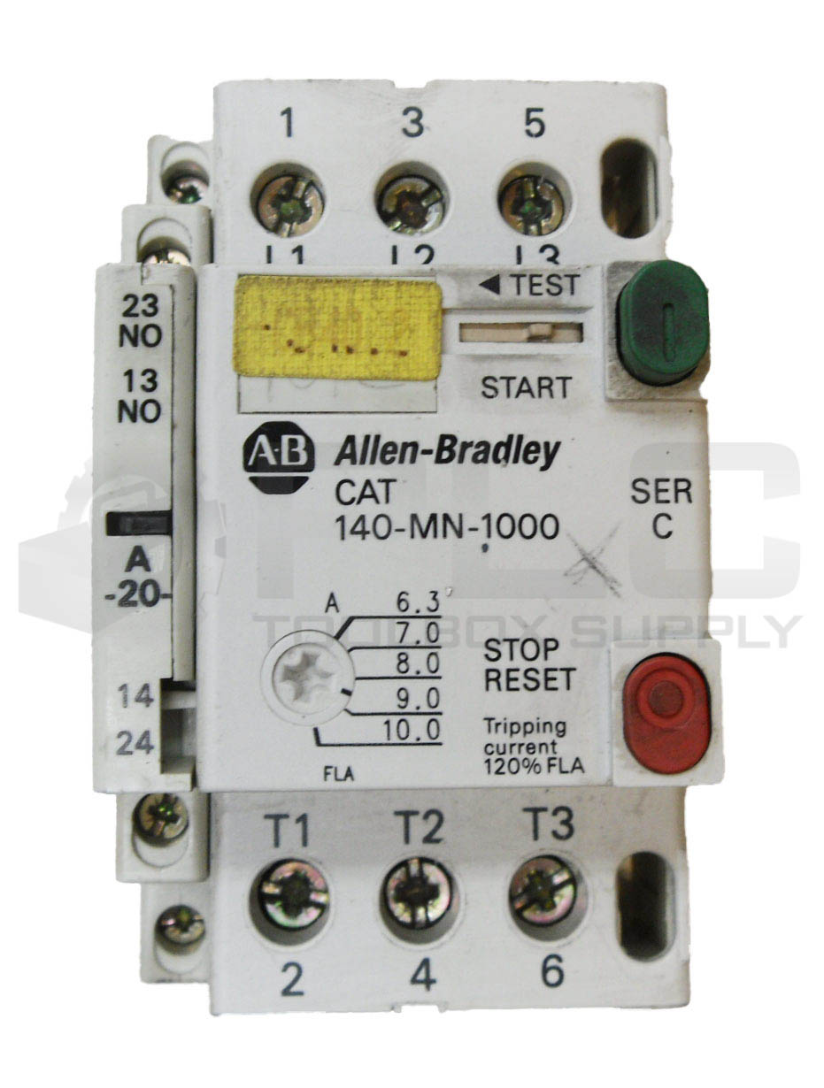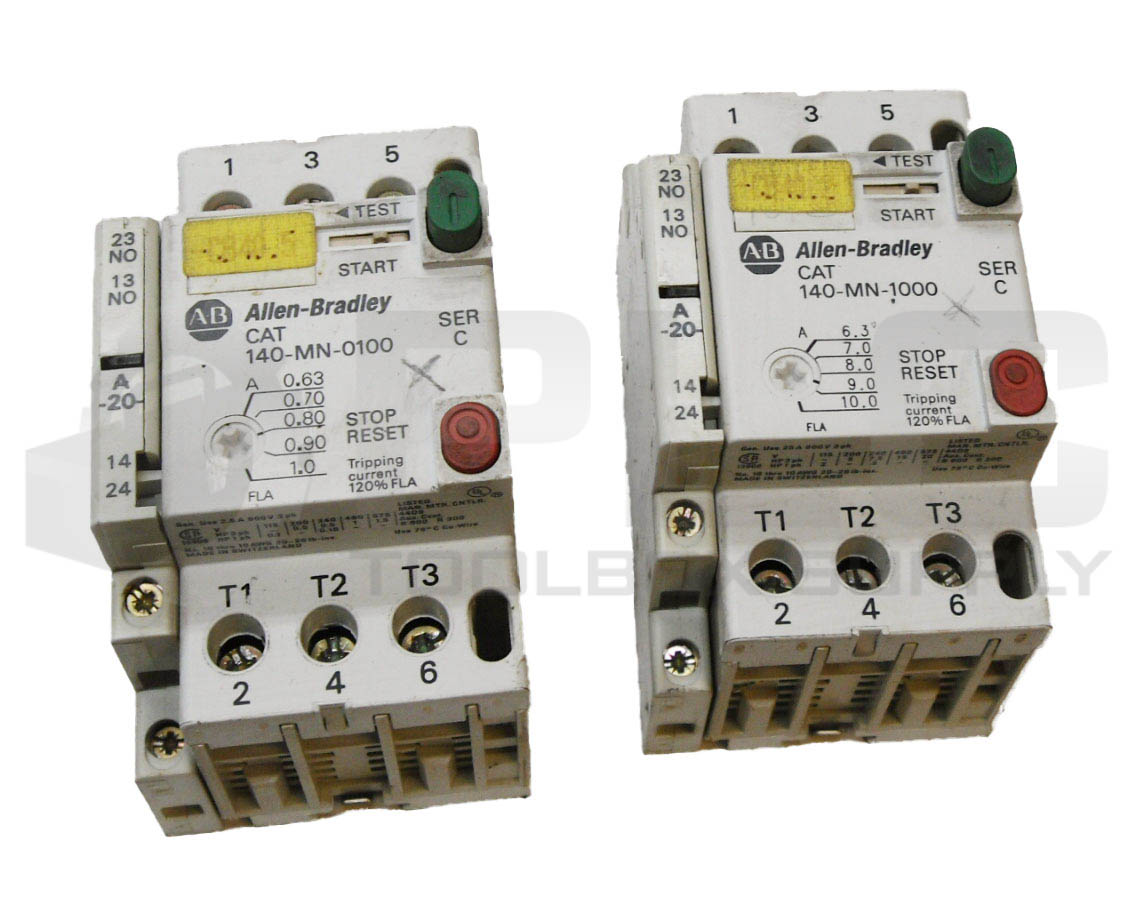 • LOT OF 2 ALLEN BRADLEY 140-MN-0100 /C MOTOR STARTER W/ 140-A20 AUXILIARY CONTACT