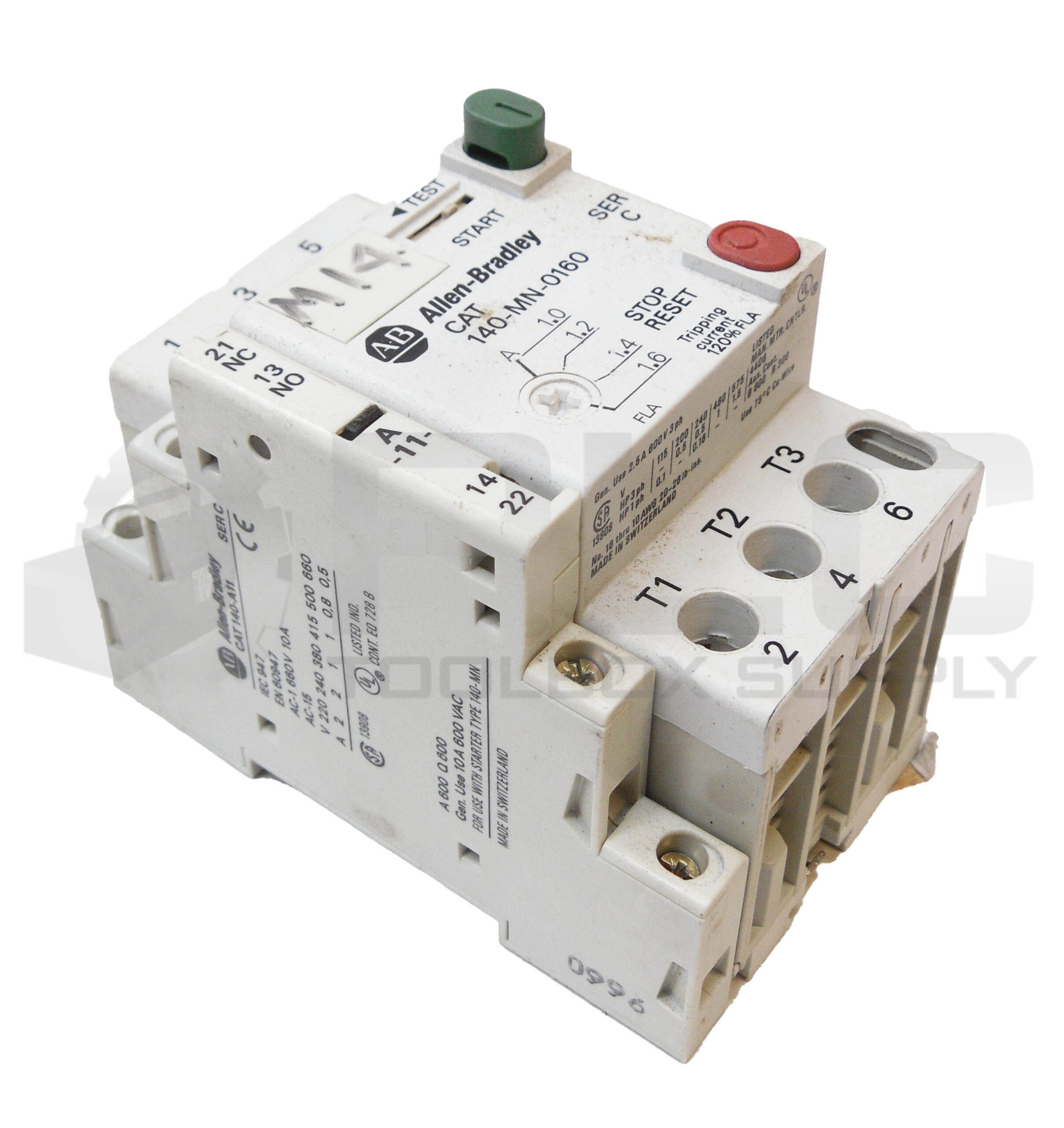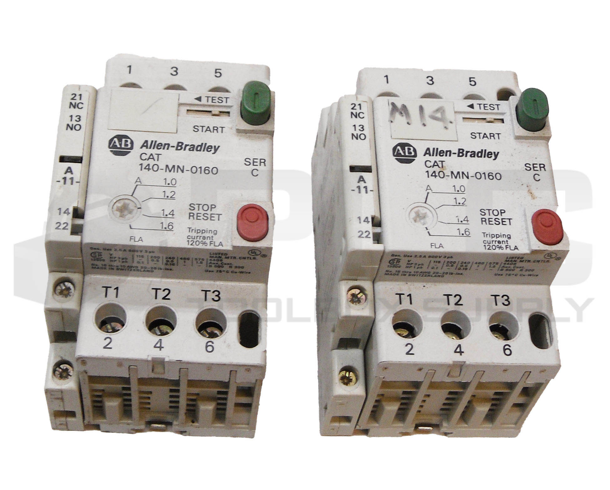 LOT OF 2 ALLEN BRADLEY 140-MN-0160 /C MANUAL MOTOR STARTER W/ 140-A11 /C