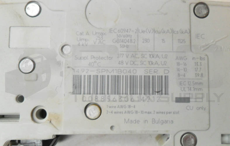 • LOT OF 2 ALLEN BRADLEY 1492-SPM1B040 /D CIRCUIT BREAKER 277VAC 48VDC 4A