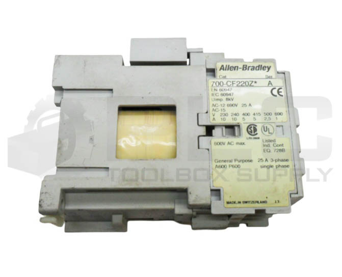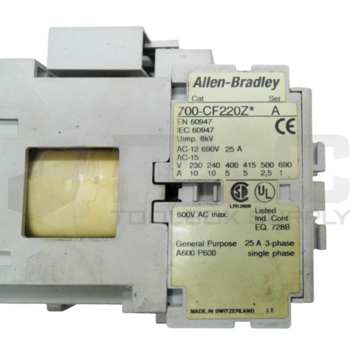 • LOT OF 2 ALLEN BRADLEY 700-CF220Z* /A CONTACTOR W/ 100-FSV55 /A SUPPRESSOR