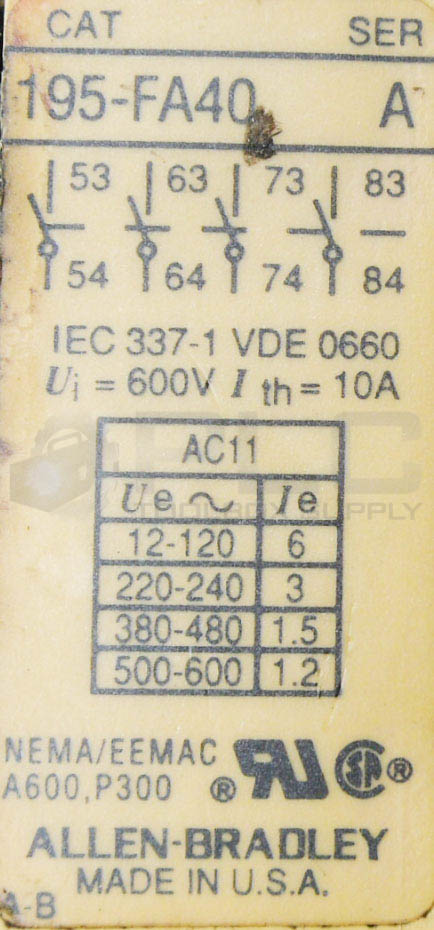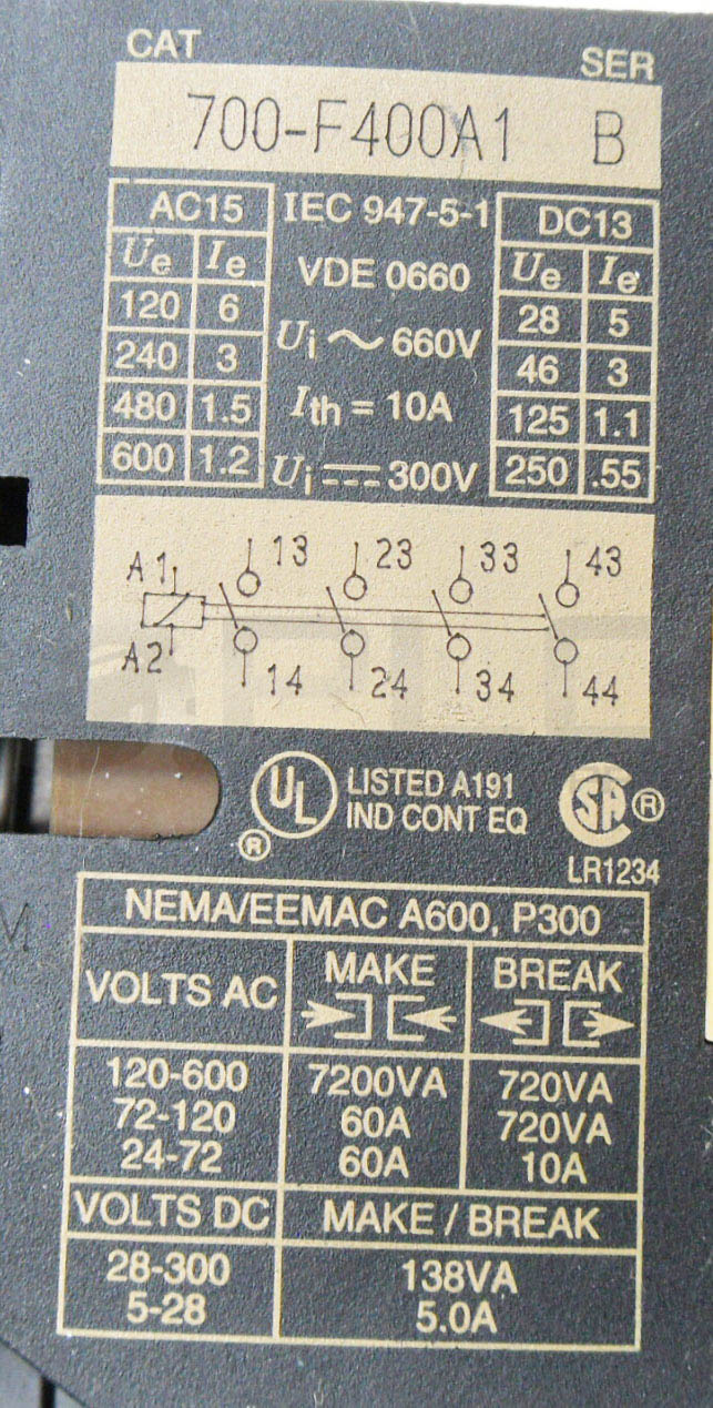 LOT OF 2 ALLEN BRADLEY 700-F400A1 /B CONTACTOR W/ 195-FA40 /A W/ HA473 COIL