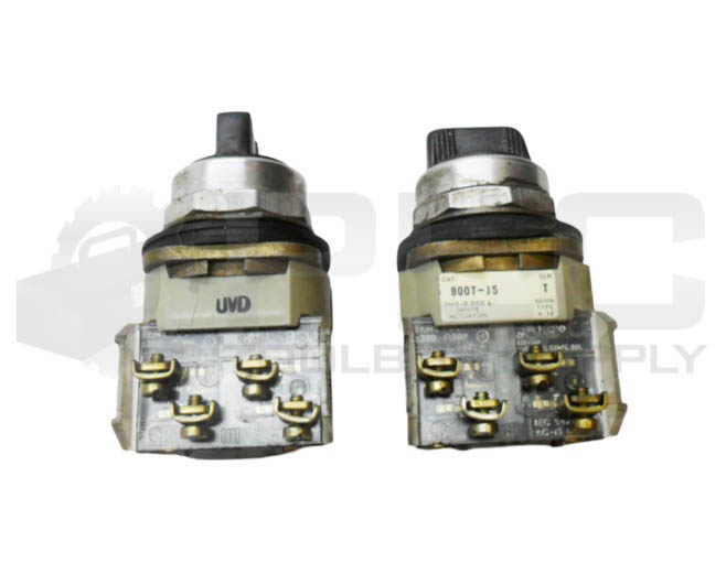 LOT OF 2 ALLEN BRADLEY 800T-J5 /T SELECTOR SWITCH W/ 800T-XA /D CONTACT BLOCK