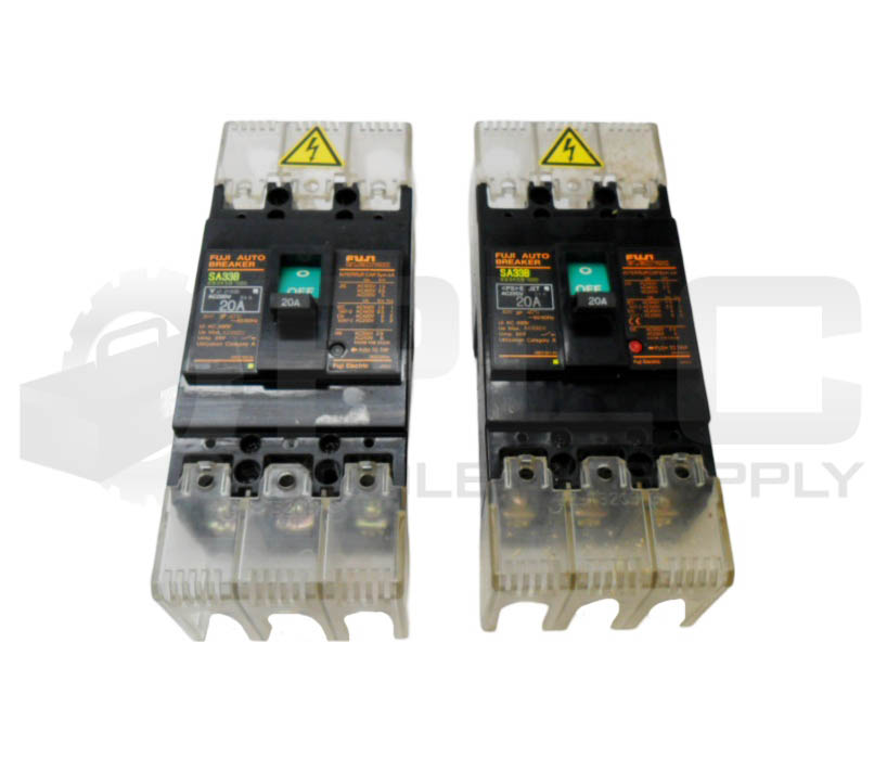 LOT OF 2 FUJI ELECTRIC BB3ASB-020 AUTO BREAKER 20A 220VAC SA33B