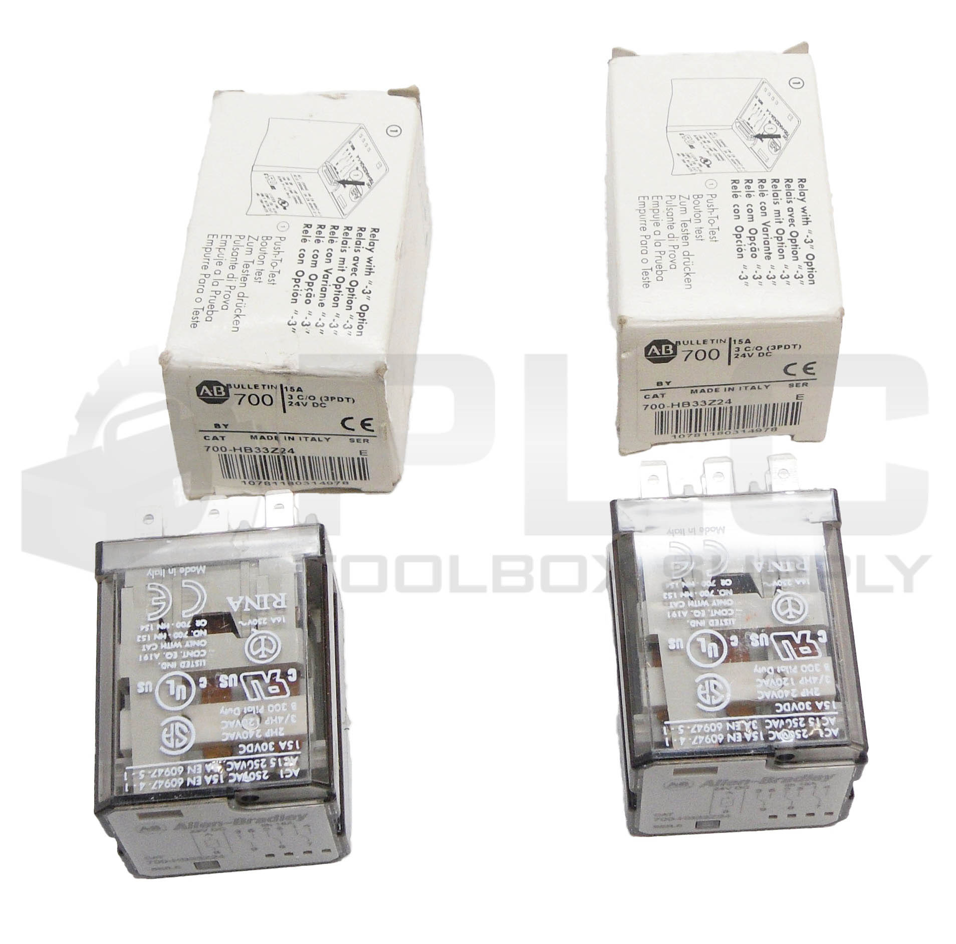 LOT OF 2 NEW ALLEN BRADLEY 700-HB33Z24 /E RELAY 15A 24VDC