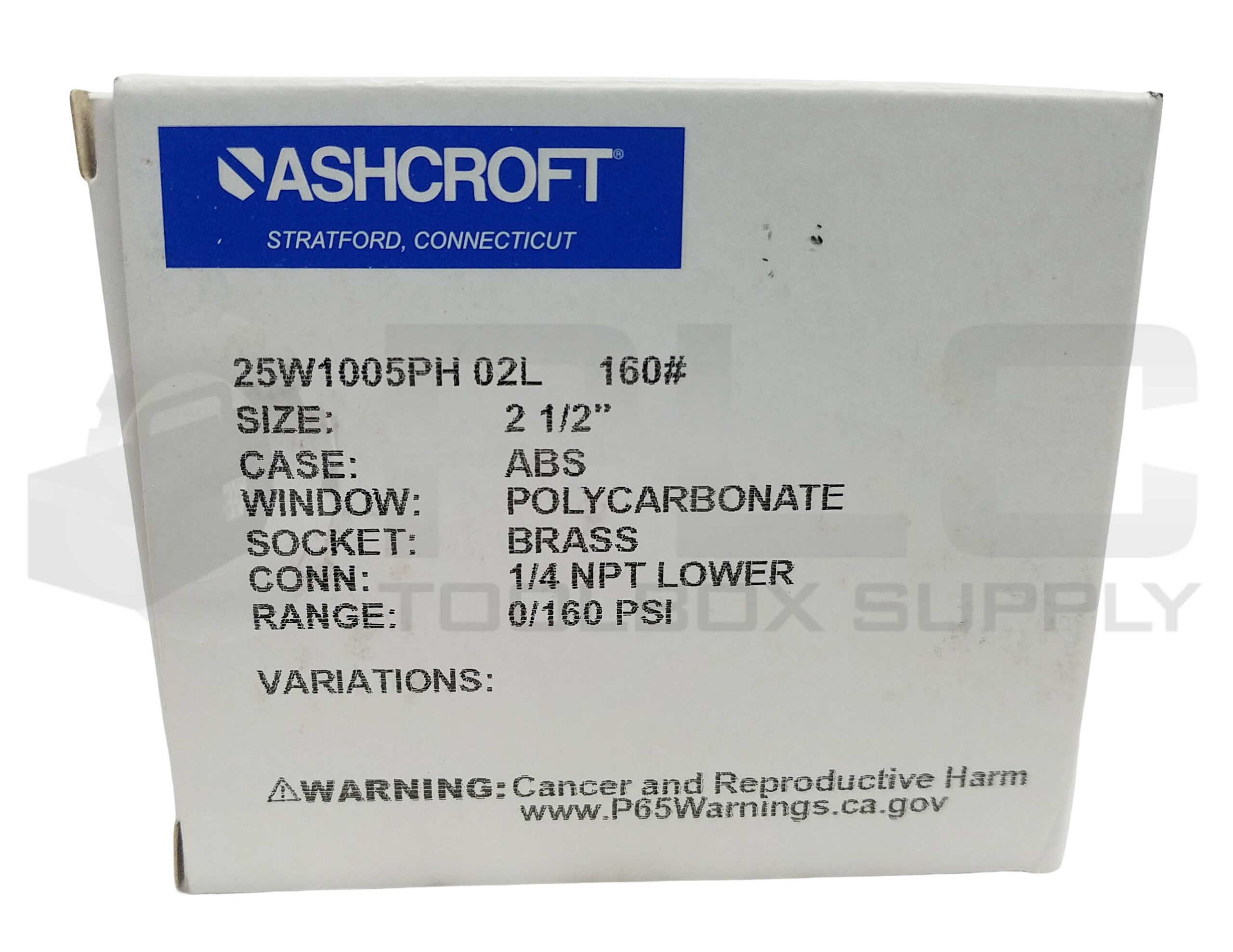 • LOT OF 2 NEW ASHCROFT 25W1005PH 02L 160# GAUGE SIZE: 2-1/2, 1/4NPT 0-160PSI