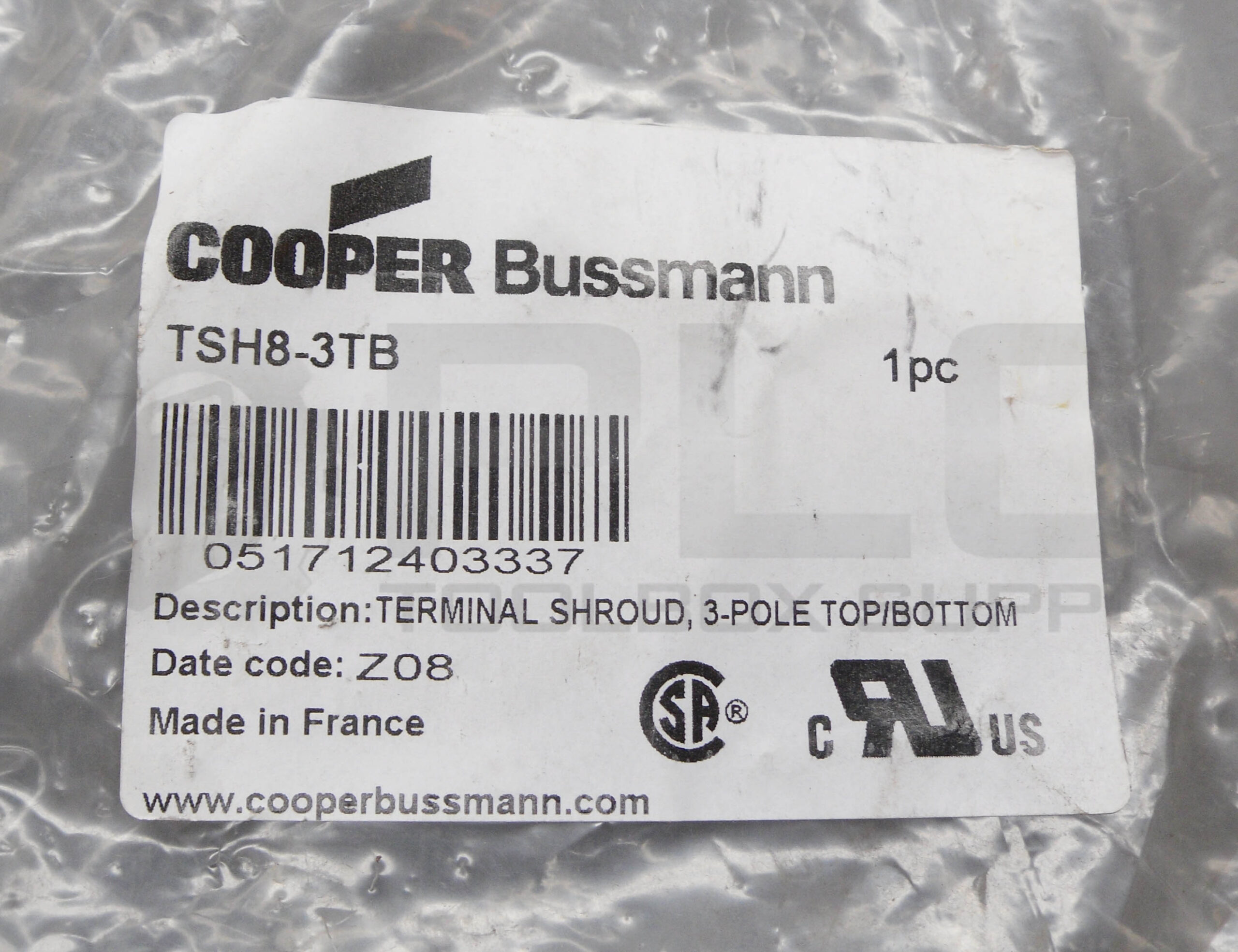 • LOT OF 2 NEW COOPER BUSSMANN TSH8-3TB TERMINAL SHROUD 3 POLE