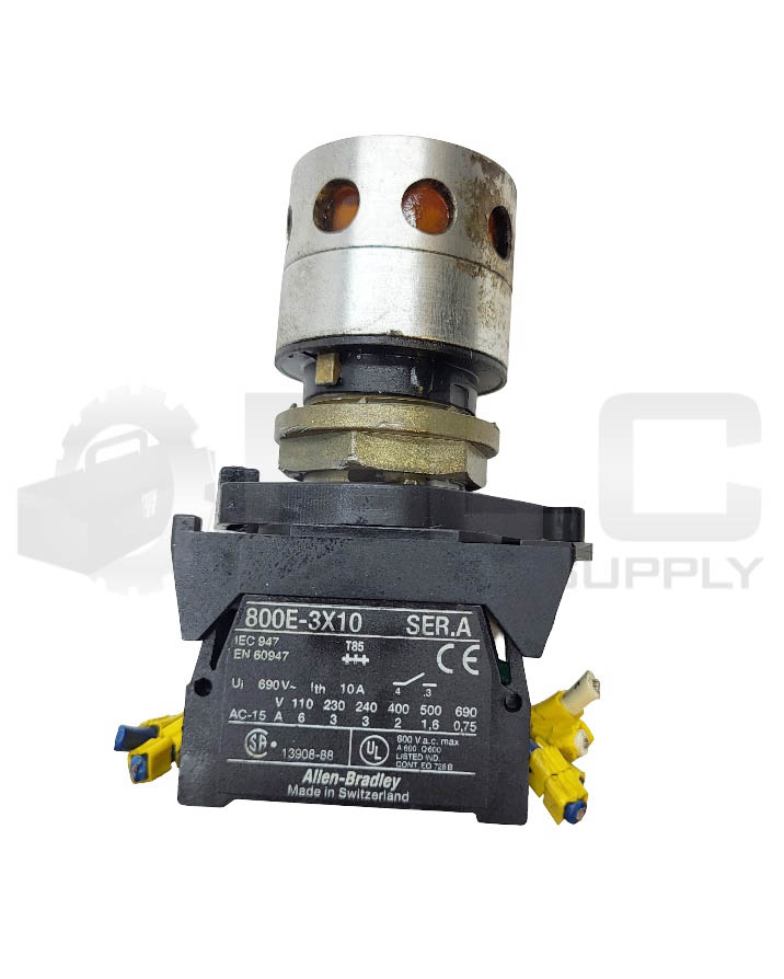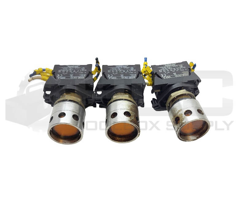 • LOT OF 3 ALLEN BRADLEY (2) 800E-3X10 /A CONTACT BLOCK W/ AMBER PUSH BUTTON