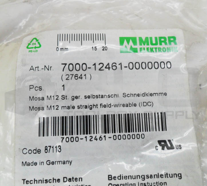 • LOT OF 3 NEW MURR ELEKTRONIK 7000-12461-0000000 ADAPTER MALE STRAIGHT